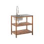 HORNWELL Wooden Outdoor Kitchen Island with Sink - Brown with Silver