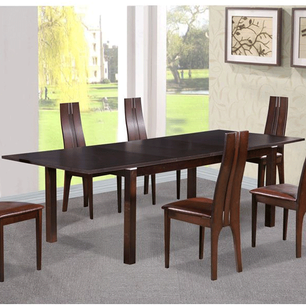 Hove Solid Beech Dining Set with Dark Walnut Veneer Tabletop and 6 Chairs