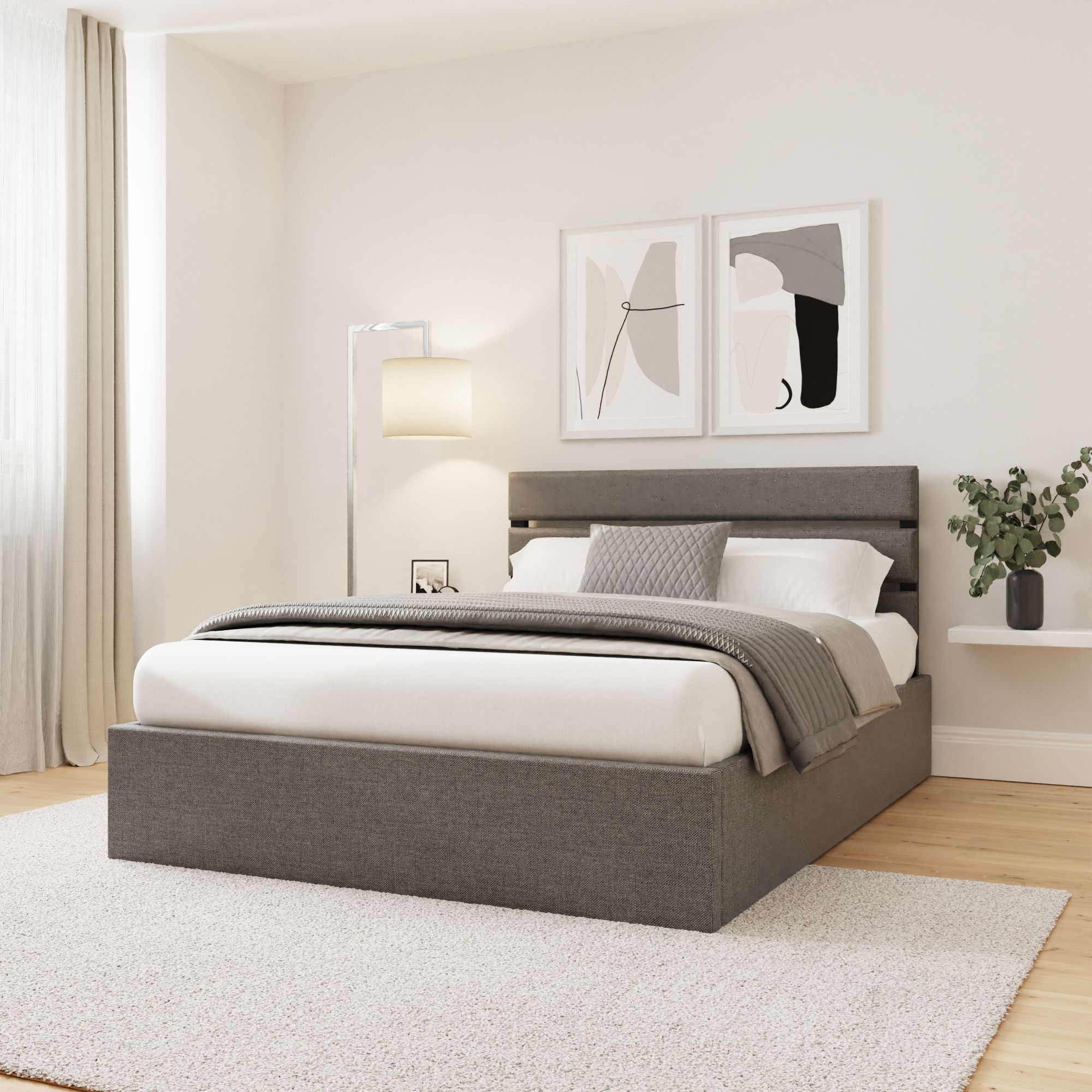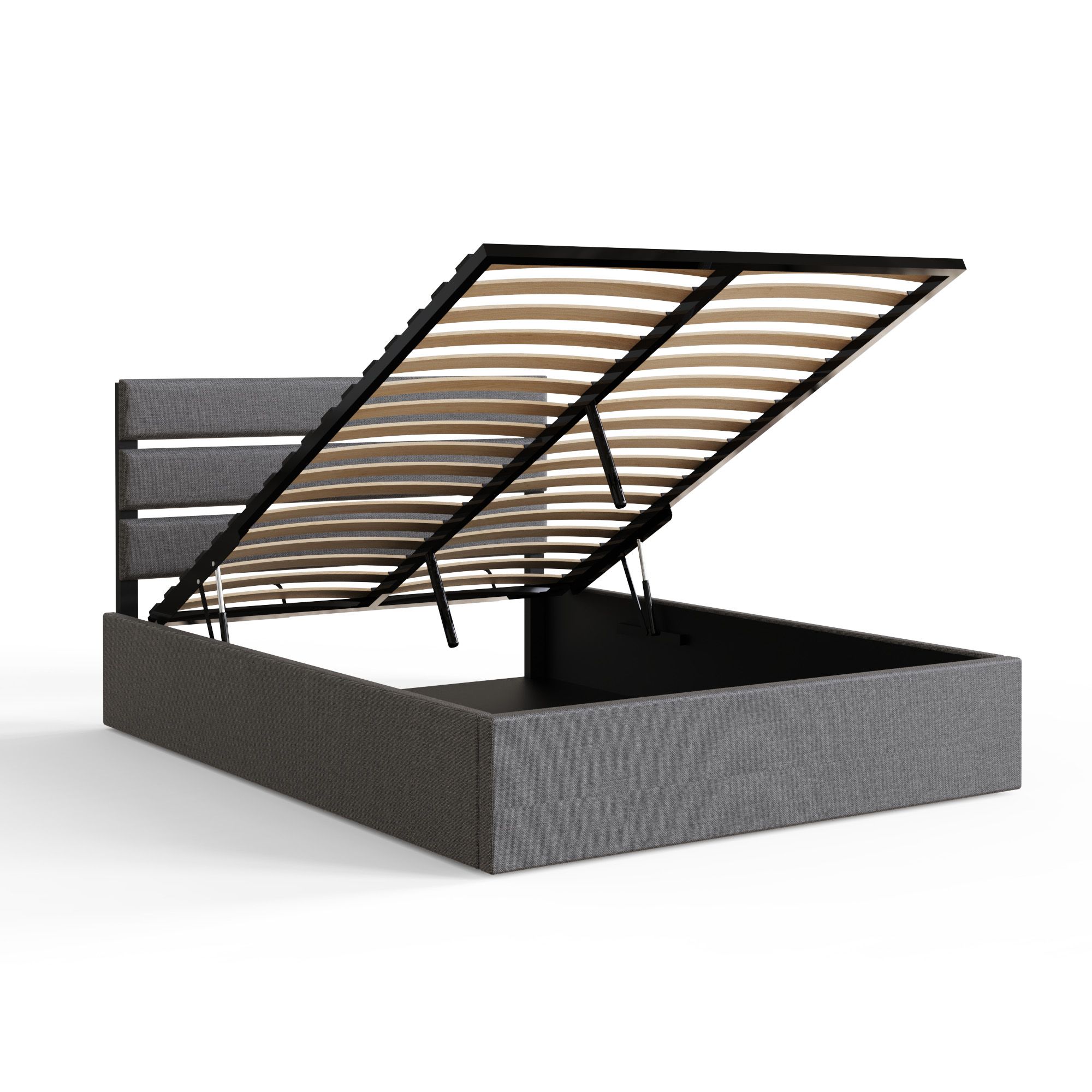 HUXON Kingsize Ottoman Storage Bed with Panelled Headboard - Grey