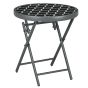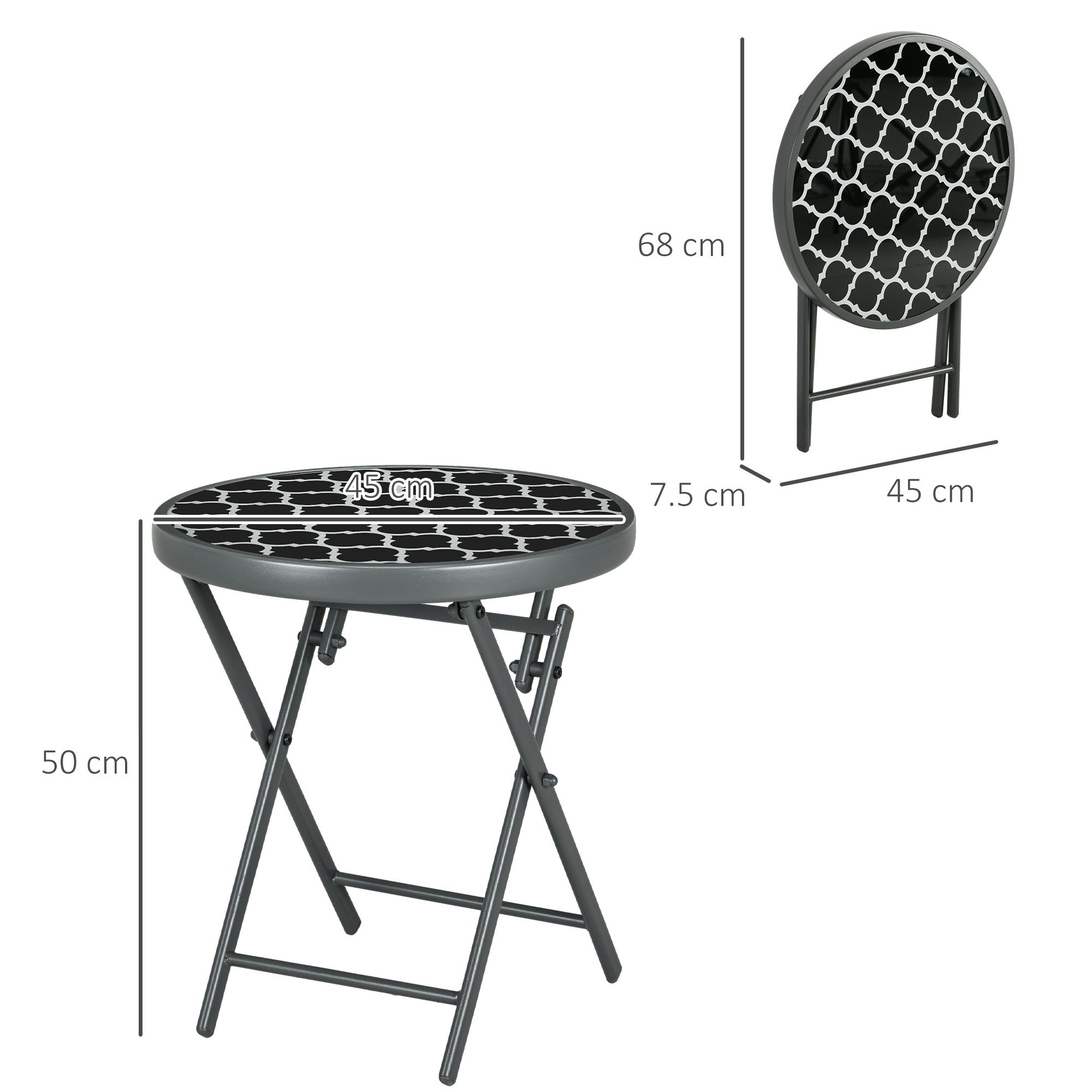 Φ45cm Outdoor Side Table, Round Folding Patio Table with Imitation Marble Glass Top, Small Coffee Table, Black