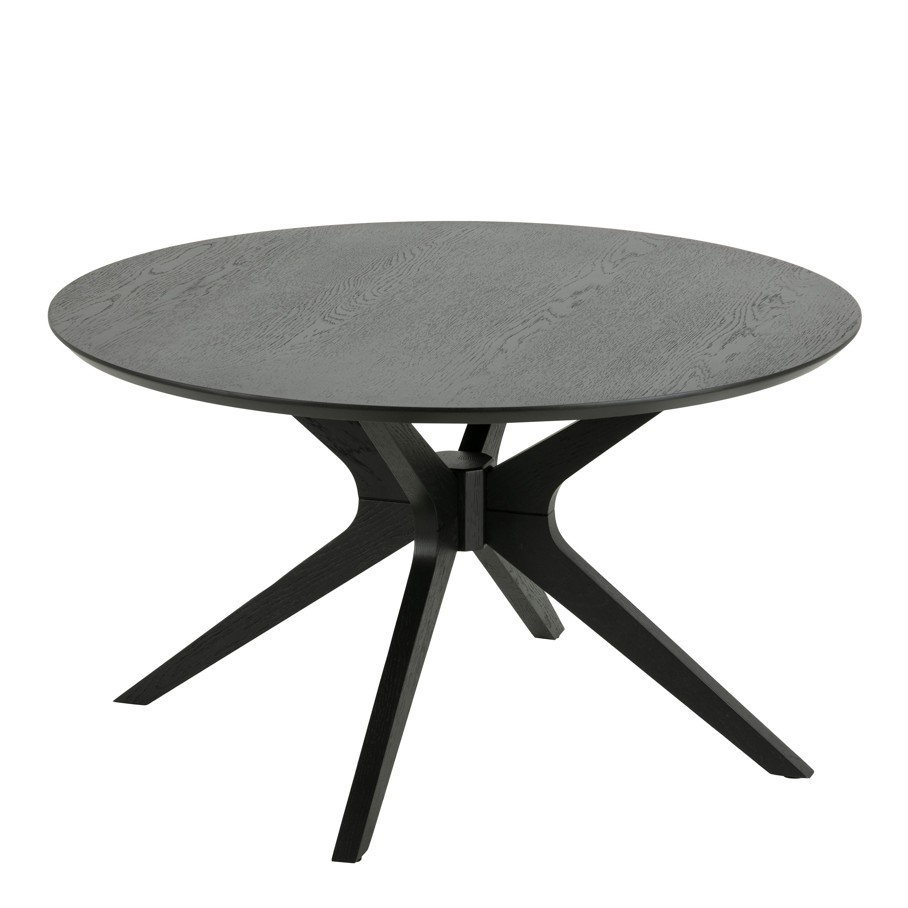 Embrace the sleek sophistication of this round coffee table, which presents a matt black lacquered oak veneer finish across its surface and cross base. Its compact design and elegant silhouette make it a versatile addition to any modern living space.