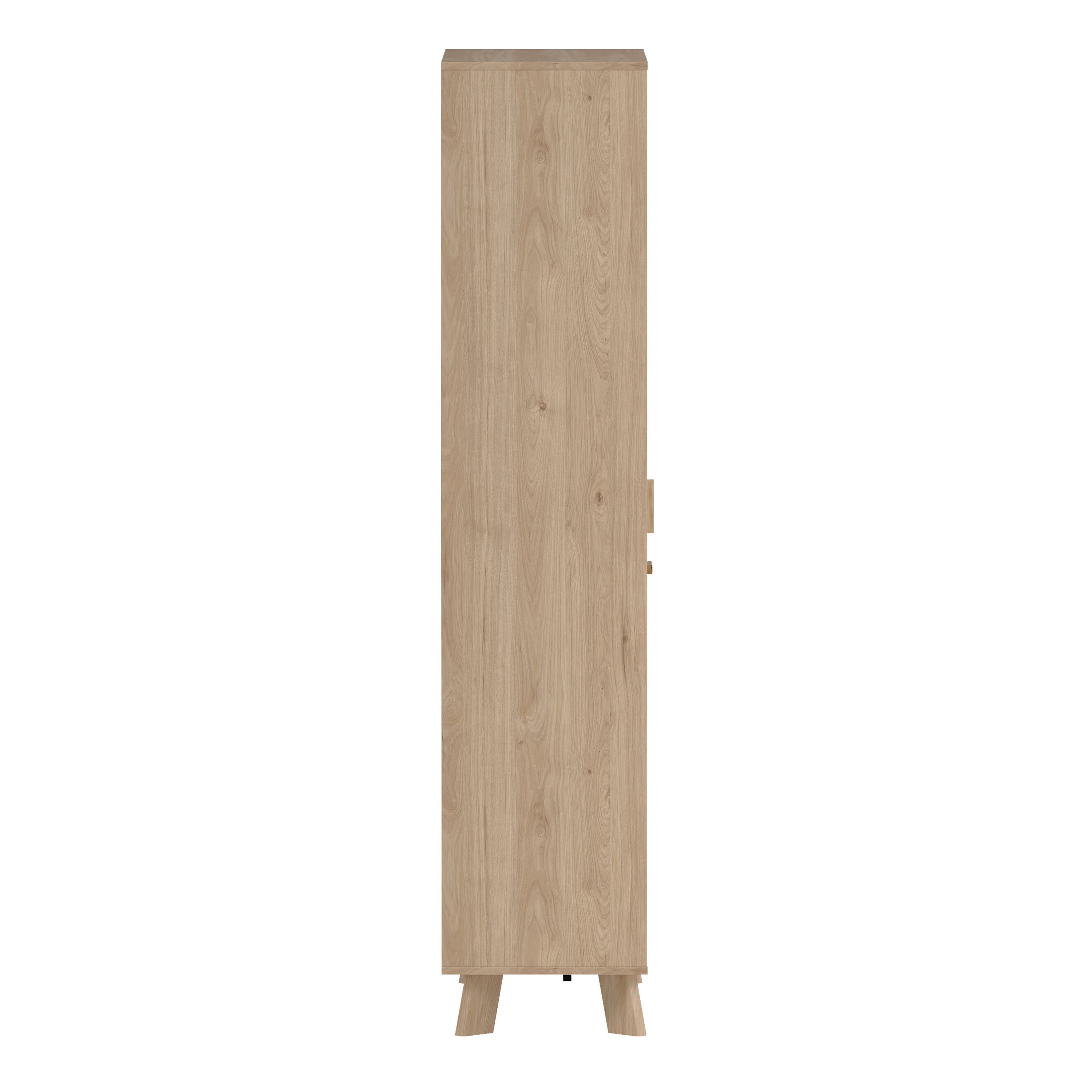 The IKRON China Cabinet, available in Jackson Hickory oak effect and White, is a blend of unique design and vibrant color choices. It includes two closed compartments with six shelves for ample storage, along with one open compartment featuring two adjustable shelves to display your favorite items. Enhance your space with this stylish and functional cabinet.