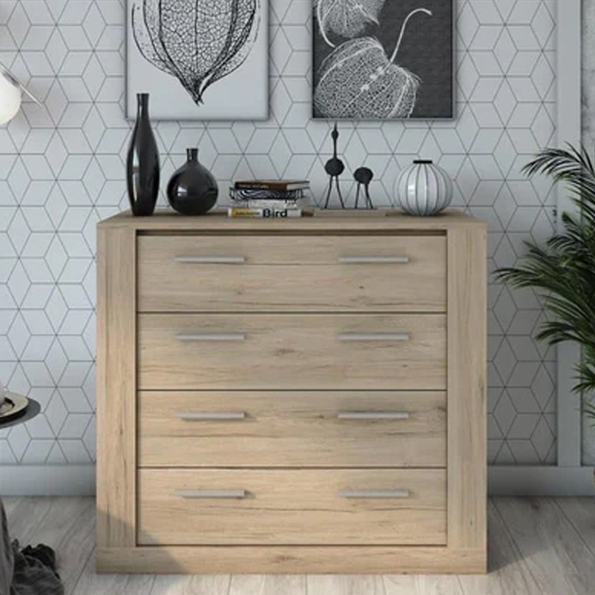 IMPHAL Oak Finish Chest of Drawers - Large-sized, 4 Drawers