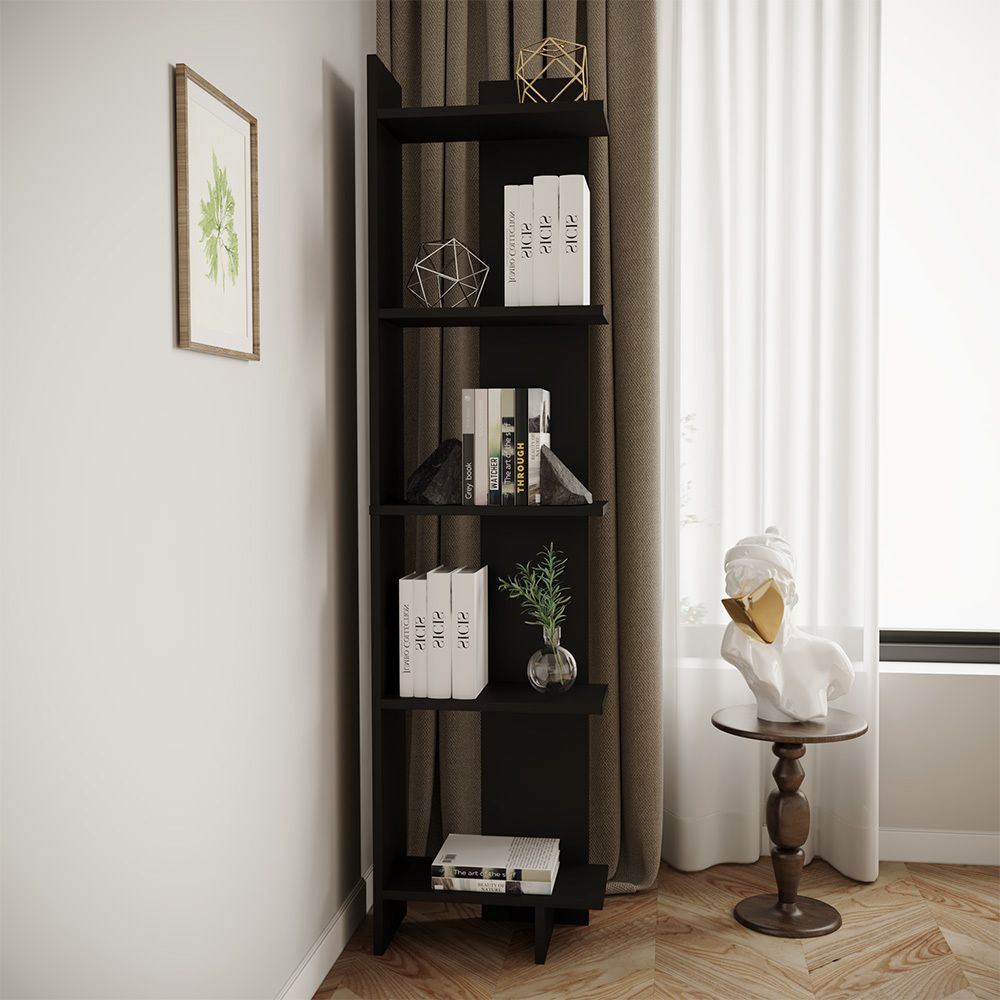 Industrial 5-Tier Corner Bookshelf Shelf Unit, Black