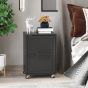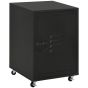Pure industrial edge for your home or office - this cabinet is cool and quirky. It's a great piece to use as an nightstand, office cabinet or side table, for those looking to do it different this season and beyond. The structure, made from particle board is durable; fitted with a metal door to keep inside guarded. Front air vents for freshness inside. Handle on the front to open the door easily. Completed with four wheels to move around easily.