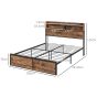 Industrial King Bed Frame, 5.2FT Steel Bed Base w/ Storage Headboard, Footboard, Under Bed Storage, 158 x 222cm, Rustic Brown