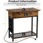 Industrial Slim Sofa Side Table with Charging Station and Flip Top