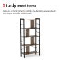 Industrial Storage Shelf Bookcase Closet Floor Standing Display Rack with 5 Tiers, Metal Frame for Living Room & Study, Rustic Brown