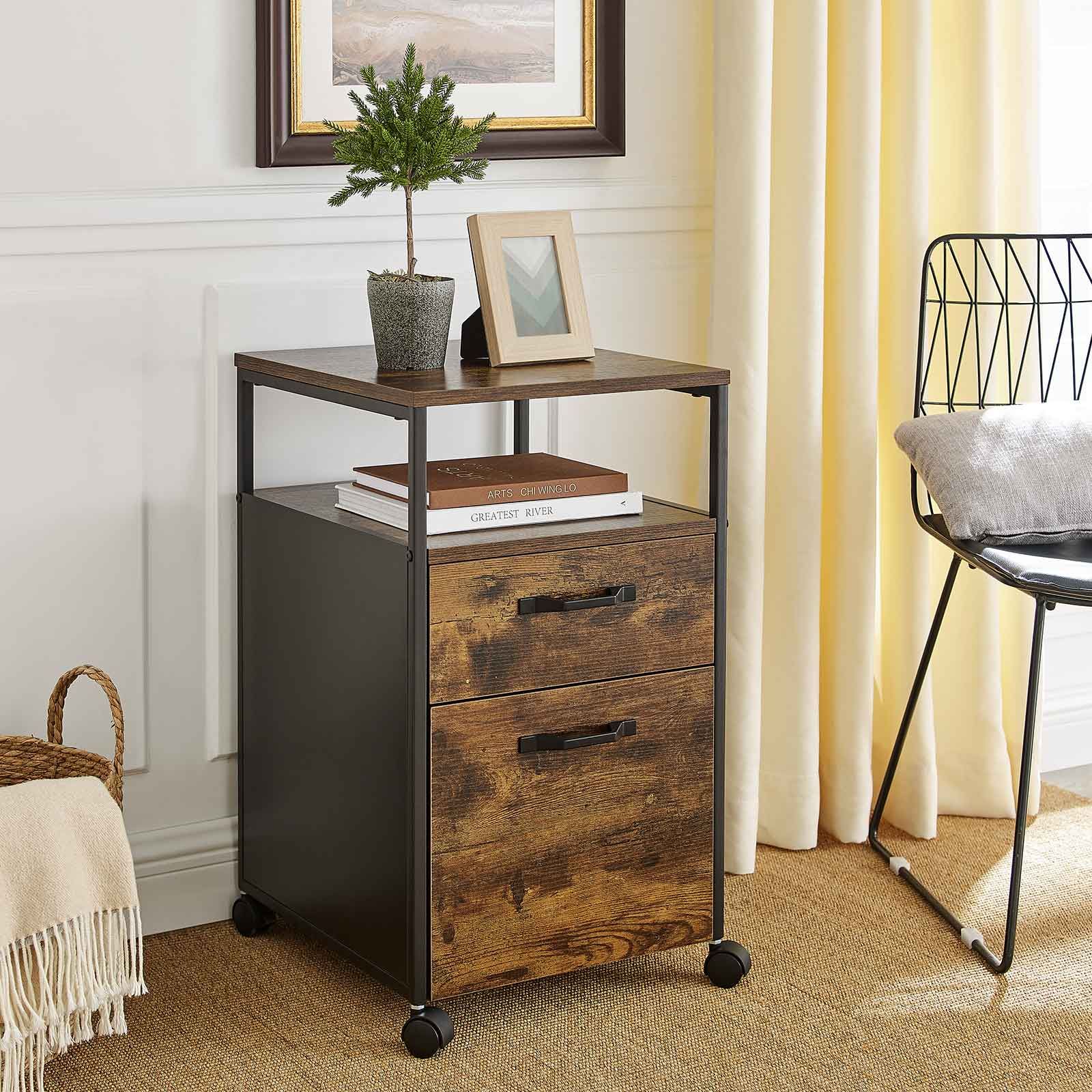 Enhance your workspace with the Industrial Style File Cabinet, combining functionality and rugged charm. Crafted with a sturdy metal frame and distressed wood accents, it offers durability and a vintage aesthetic. Two spacious drawers provide ample storage for files and office supplies, while the caster wheels ensure easy mobility. Perfect for adding a touch of industrial flair to your home or office decor.