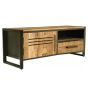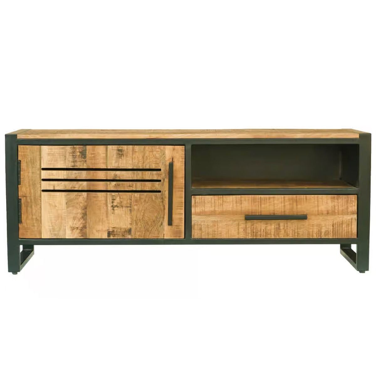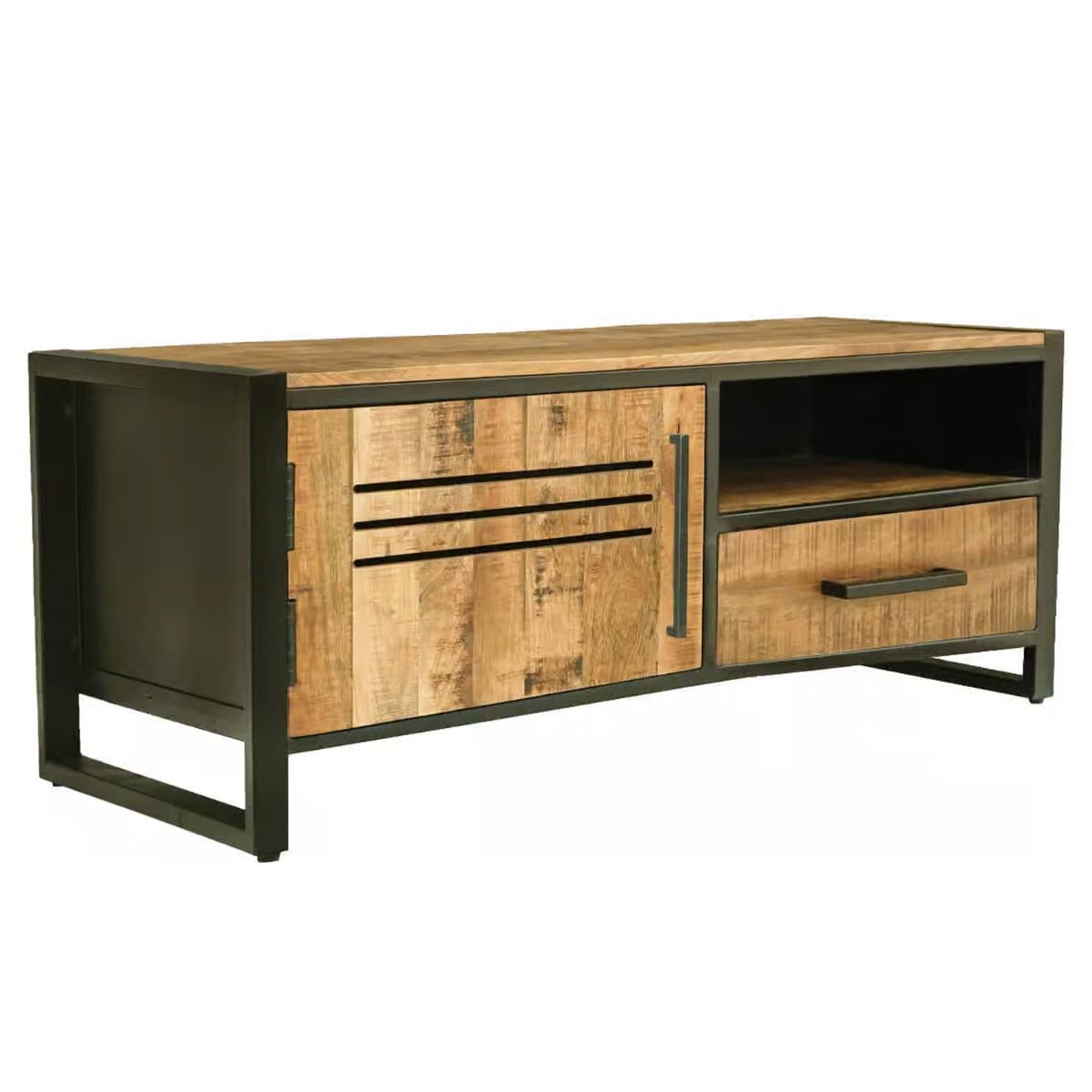 Industrial Style Mango Wood Small Plasma TV Unit 118cm with Door and Drawer - Black and Brown