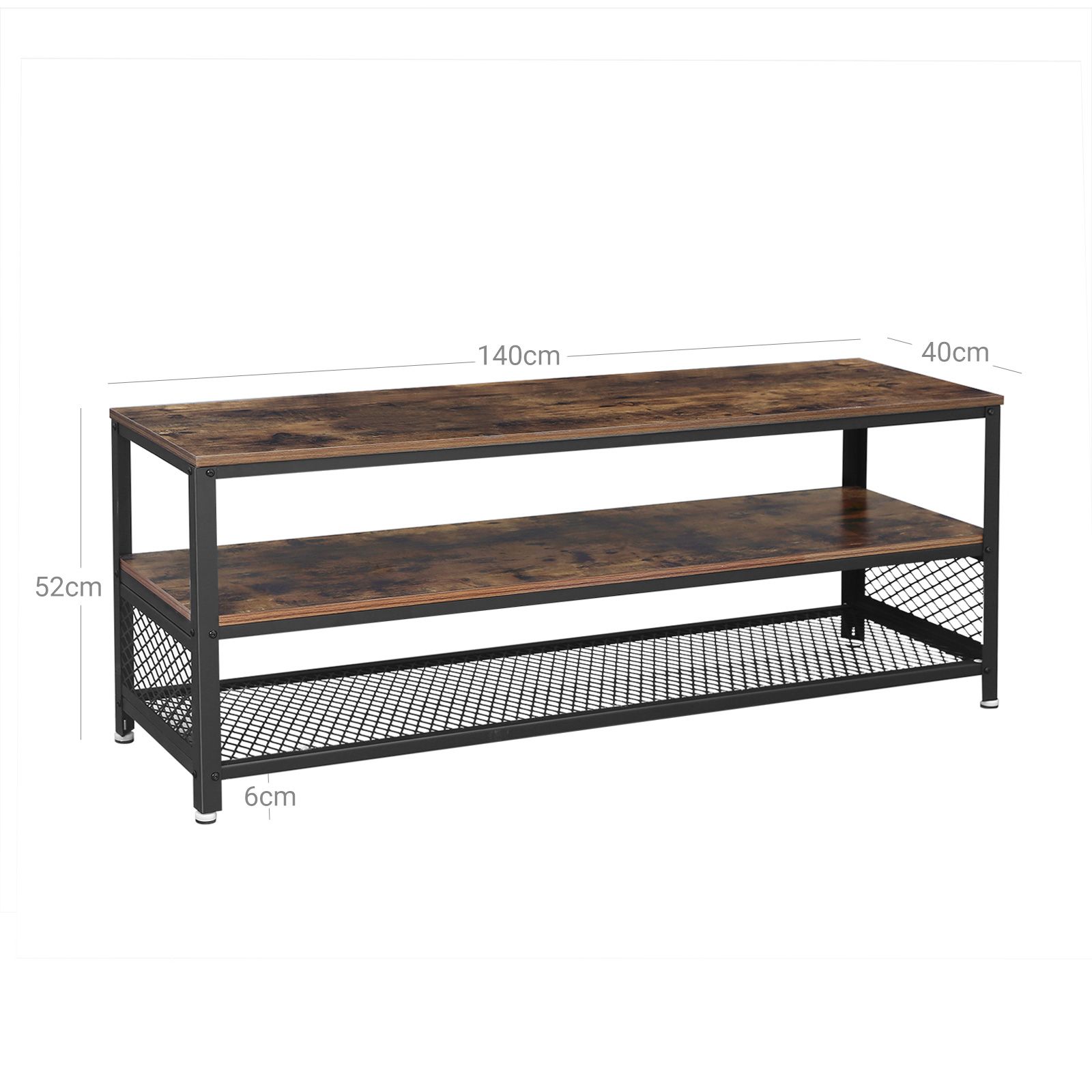 With our new "VASAGLE" TV cabinet in trendy industrial style, you can create exactly what the designers had in mind: a relaxed and pleasant atmosphere in the midst of your home. Take a look at other furniture from our industrial collection and combine the TV table with our shelf to make a perfect match. A Favorite for TV Junkies Use this functional TV console for your flat screen and enjoy a binge-watching of your favorite series in continuous loop. What TV shows do you binge recently? Would you like to recommend them? For Your DVD Collection and Game Console There are 2 shelves in the lower area of the TV cabinet on which you can store DVDs, game console or your remote controls.