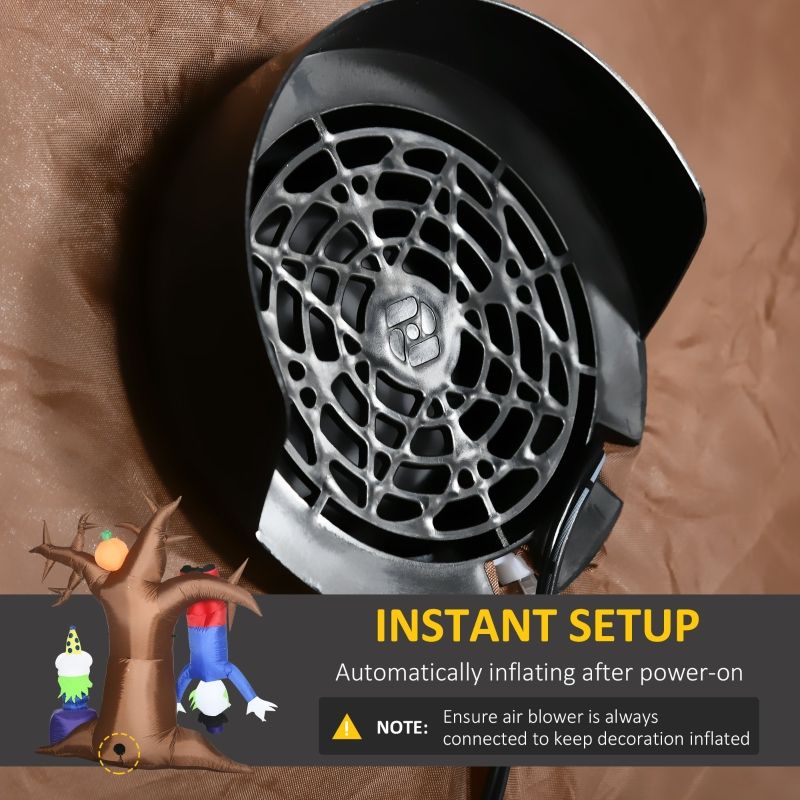 - Please Note: Ensure the air blower is always connected to a power source to keep the Halloween Ghost Tree inflated. Do not use the inflatable outside in heavy rain, snow, or wind.