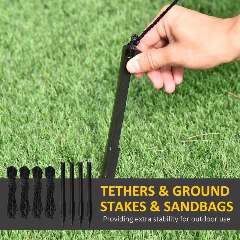 - Includes four stakes, four drawstrings, and three sandbags to help keep it anchored on windy nights