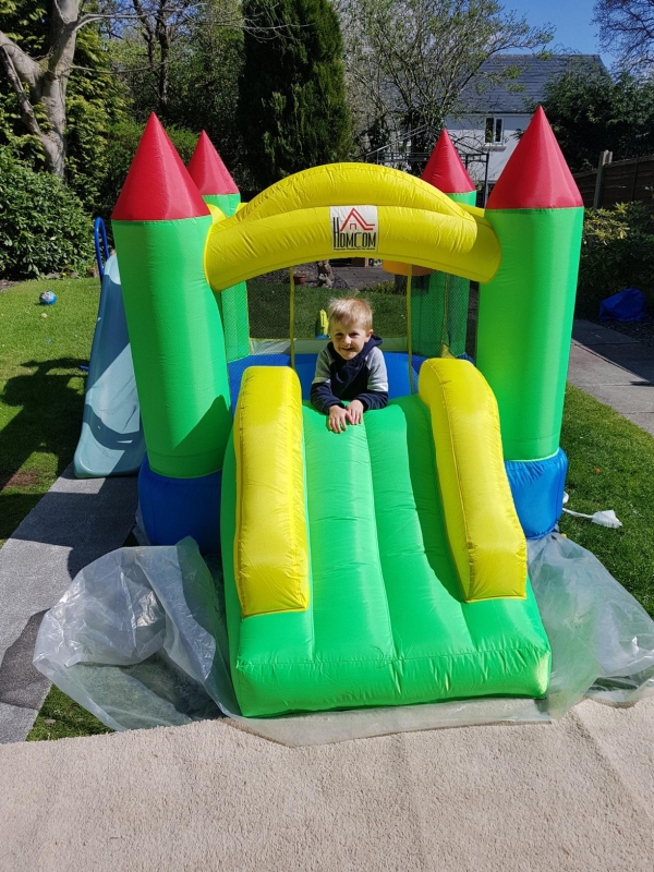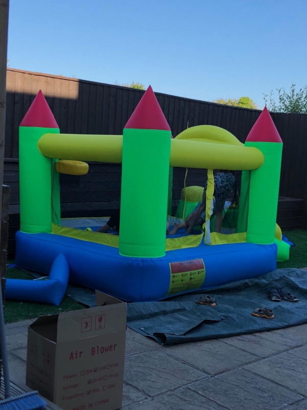 This inflatable bouncing castle is a perfect choice for children fun time, made with a non-woven fabric which is fire, waterproof and puncture preventive material. Great two way stiching used to make the shapes and strengthened the seams. Comes with a surround mesh to prevent children falling out, also a slide in front to enter and exit. A great and secure place for children to play and have fun.