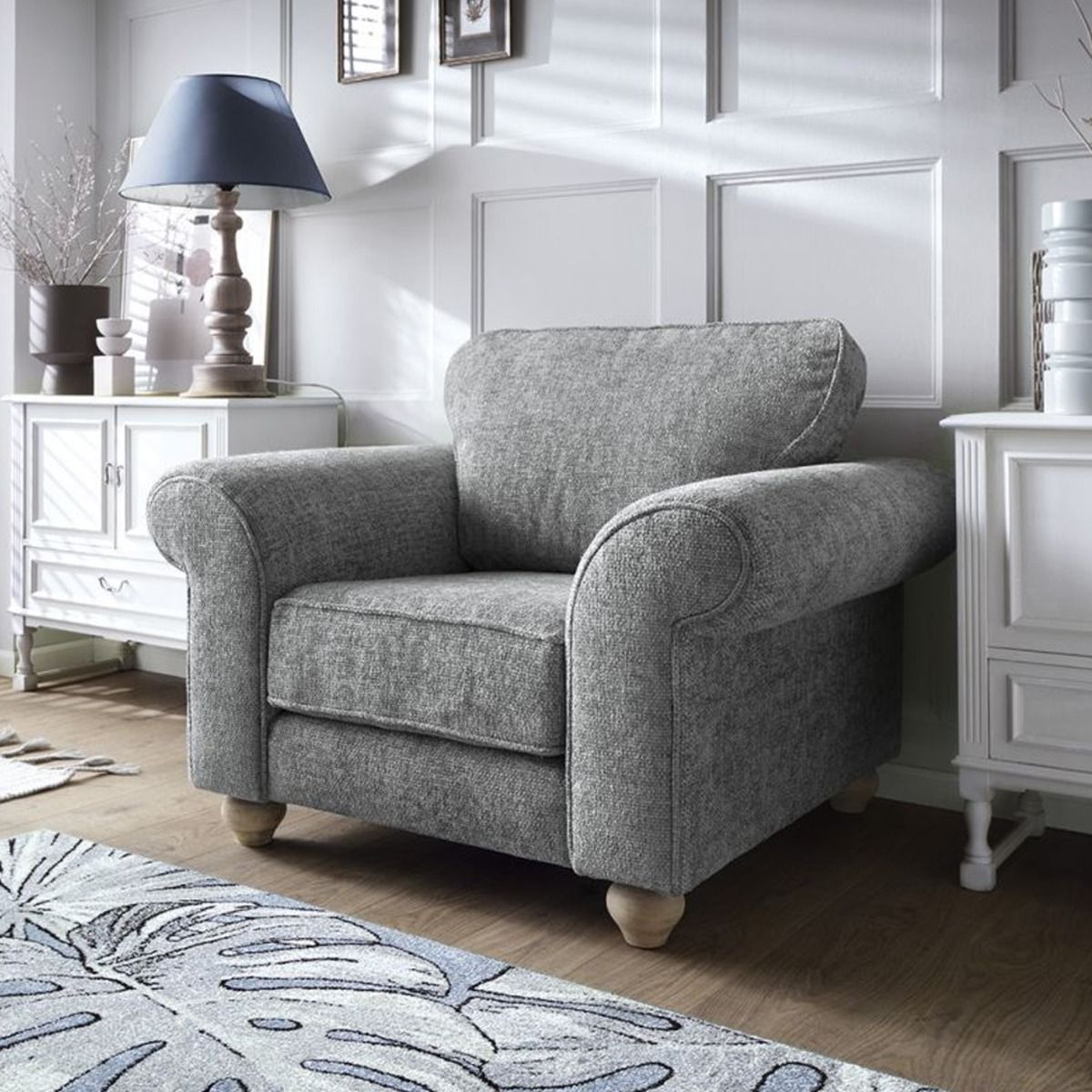 The Ingrid range matches tasteful elegance, soft comfort and a welcoming design to complement any room in style. Upholstery for the Ingrid is a braided chenille fabric. A deep foam block seat, fibre filled back cushion and a couple of toss pillows provide all the comfort you need.