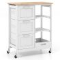 INXO Kitchen Island Rolling Cart Utility Cart on Lockable Wheels with 3 Drawers-White