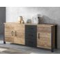 Beautifully tailored and finished in a timeless oak decor with black matt, this elegant sideboard cabinet will effortlessly blend in any modern or contemporary interior. It is made from 16mm laminated board. The three drawers all feature a durable, smooth-running mechanism. The three hinged doors can be used to store all kinds of living room and dining area essentials, including glassware, crockery and wine collection.