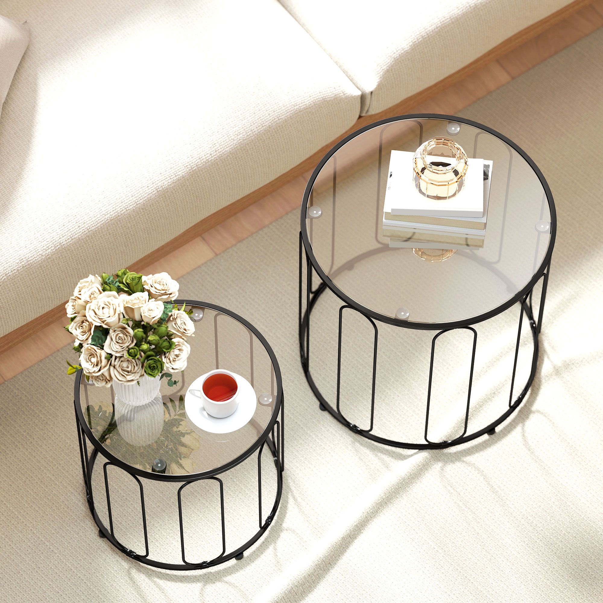IRONTON Nesting Side Tables with Elliptical Cut Out - Black