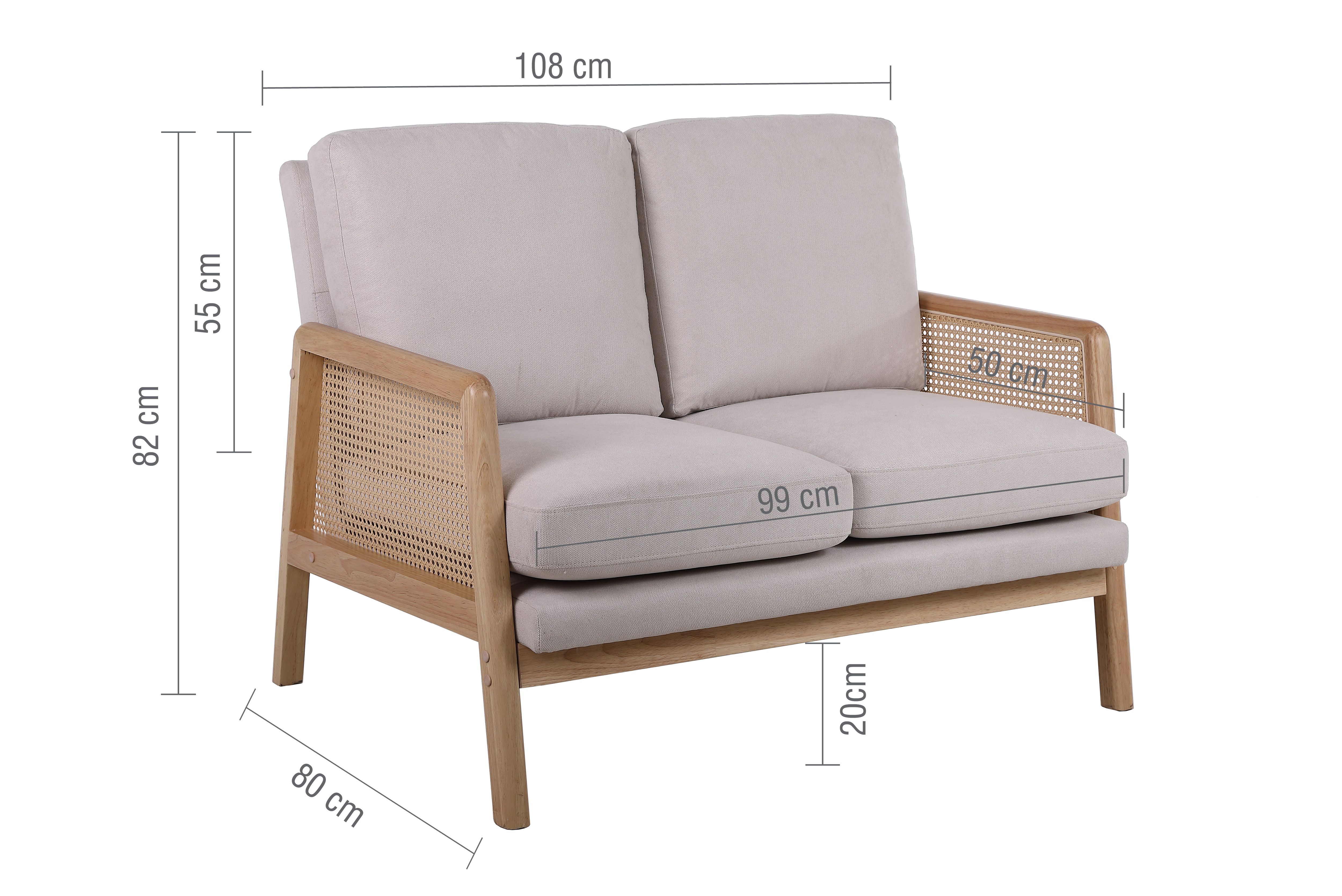 ISERA Fabric 2 Seater Rattan Sofa - White with Light Oak
