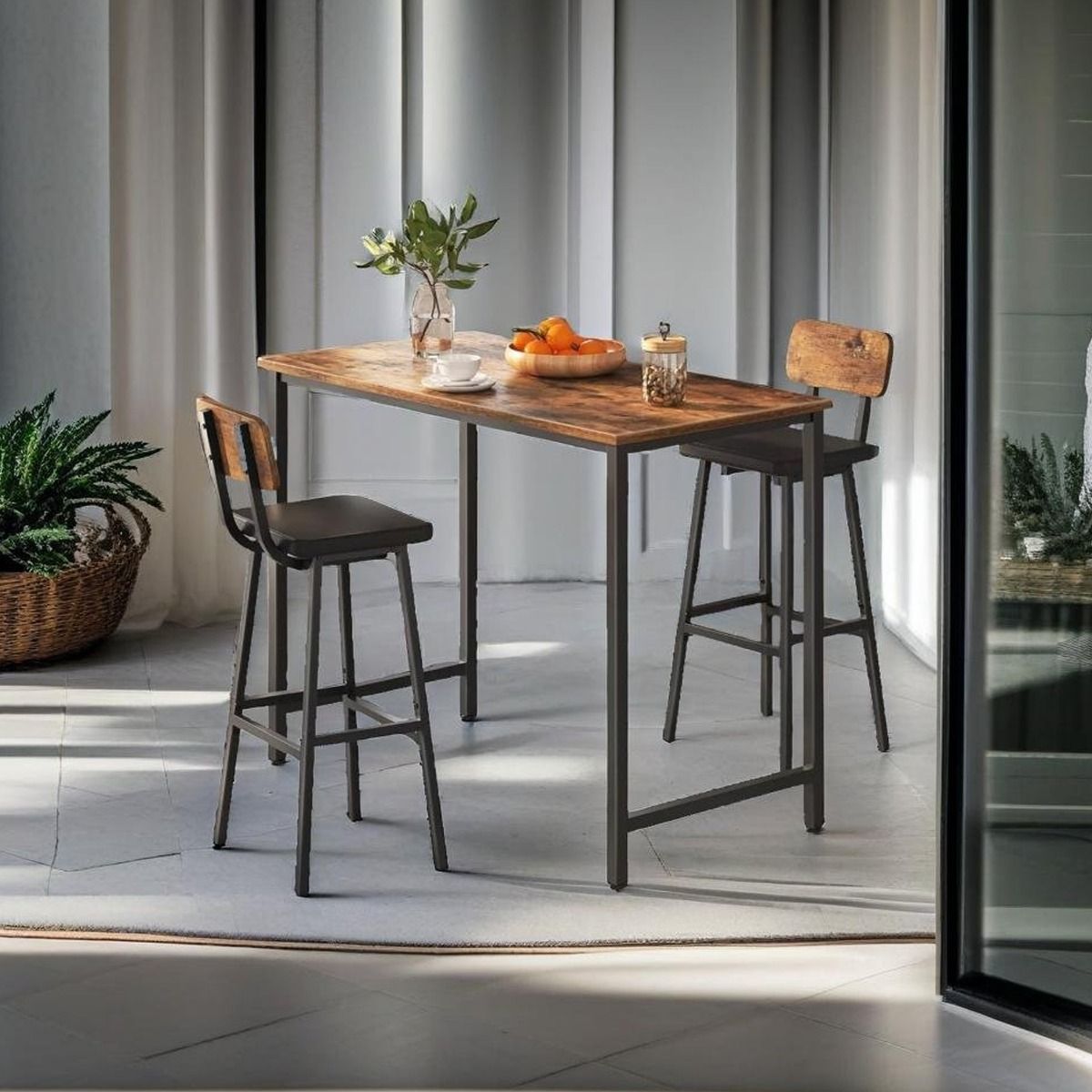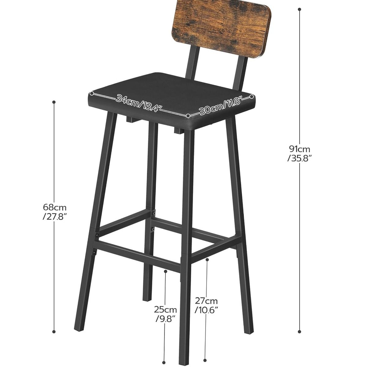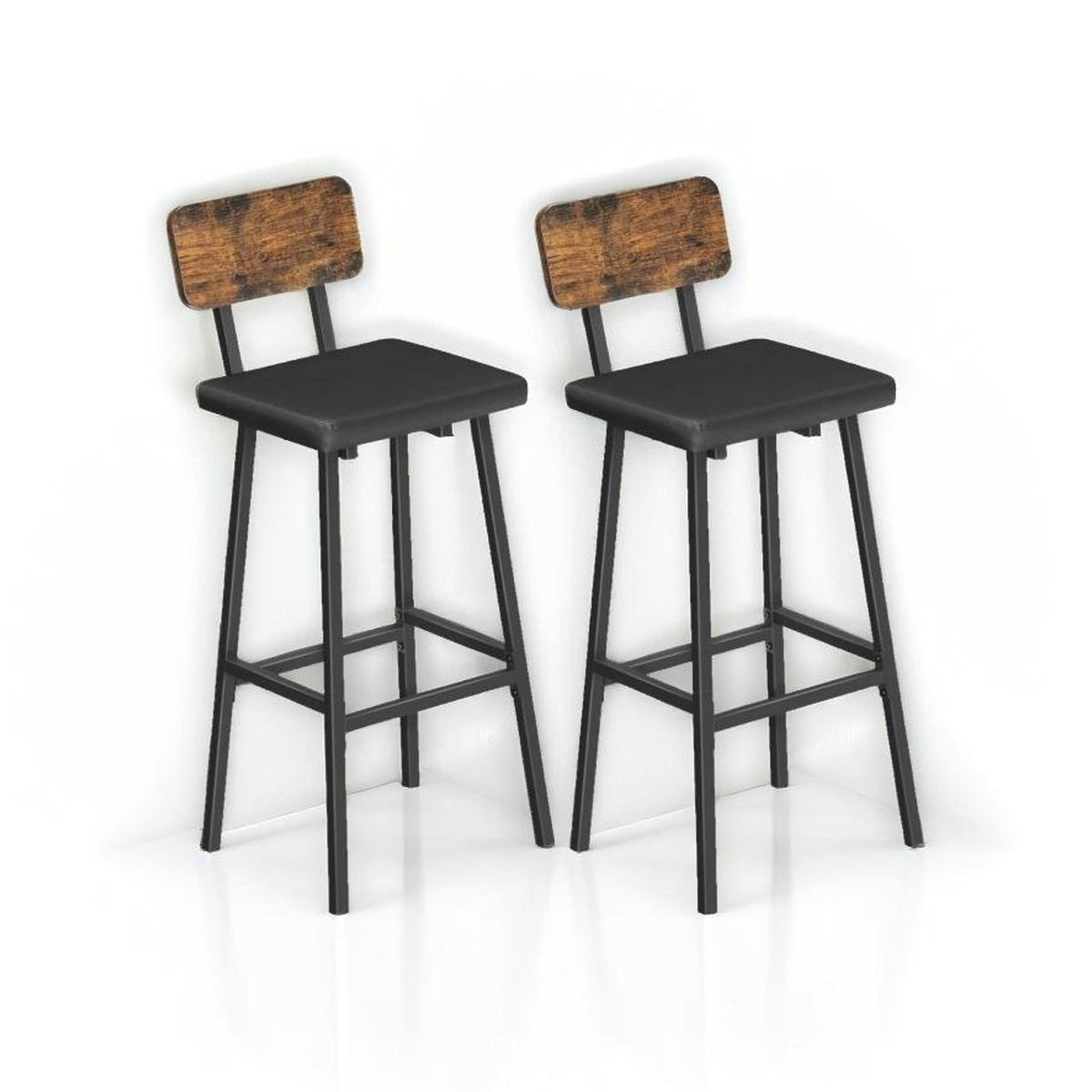 IVEMONT Bar Stools Set of 2 PU Upholstered Breakfast Chairs with Backrest - Rustic Brown