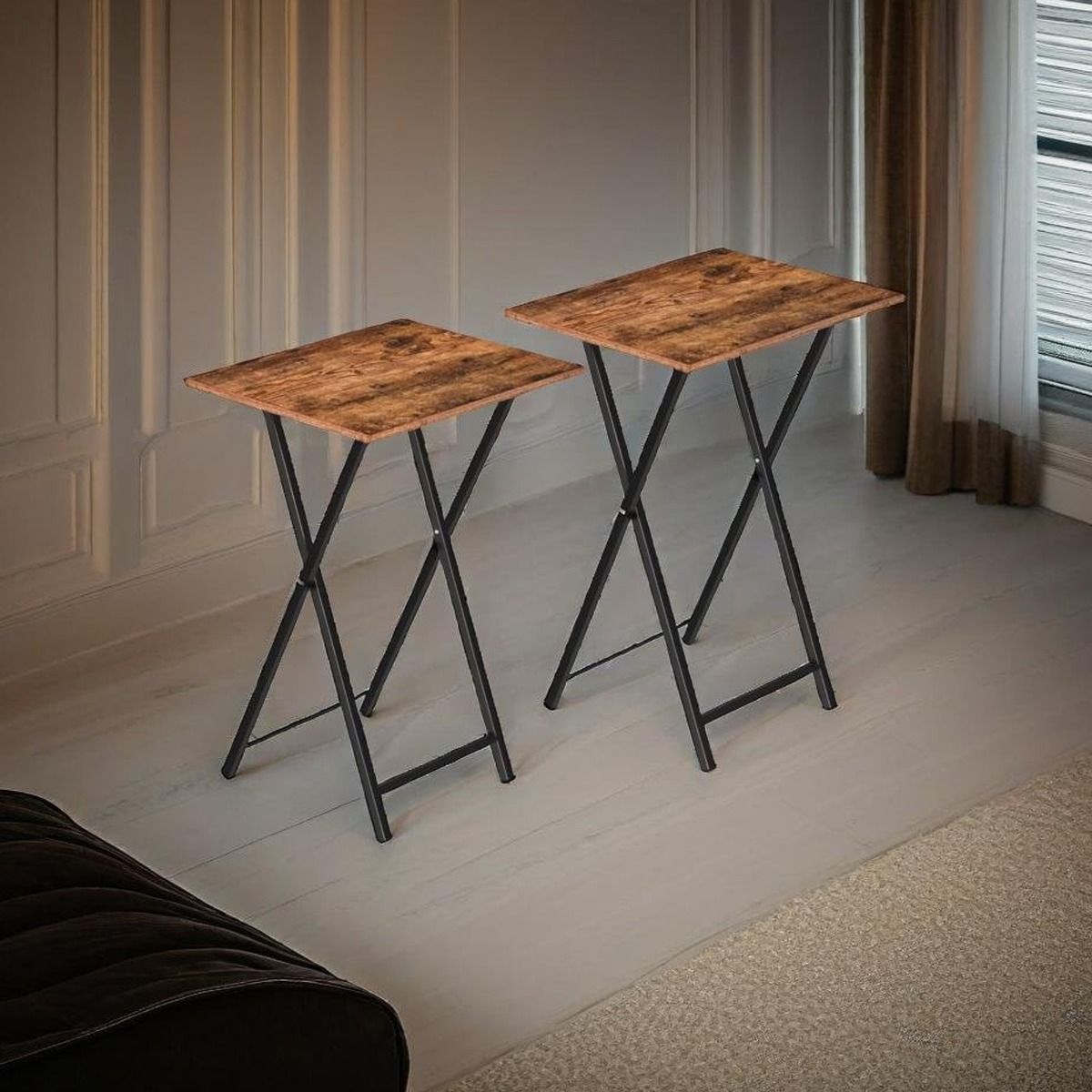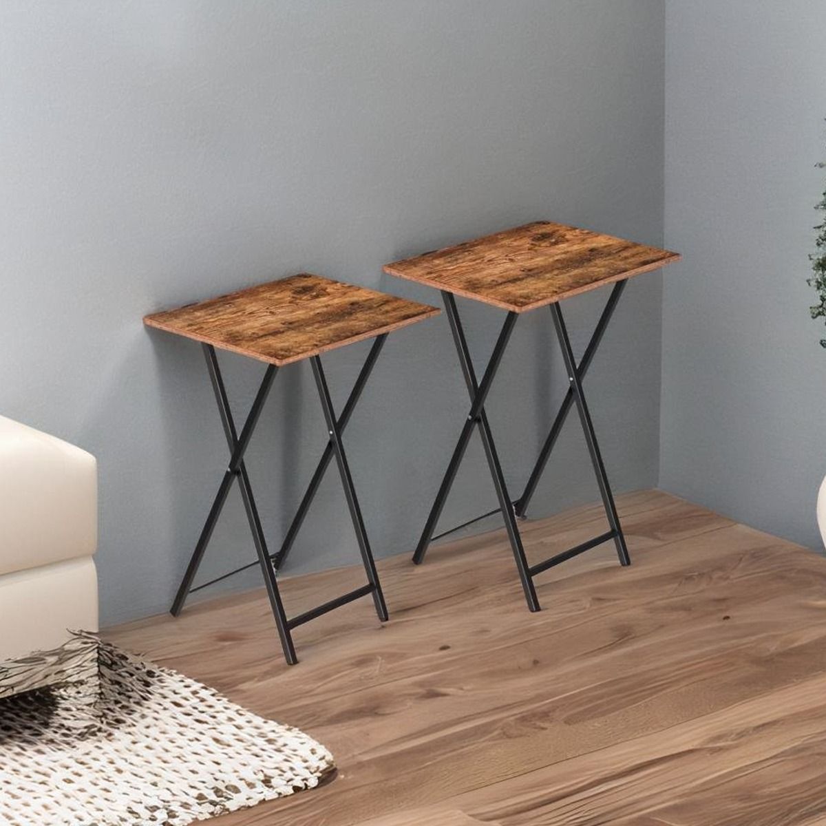 IVEMONT Side Tables Set of 2 Folding Sofa Tables - Rustic Brown