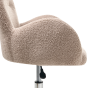 Upgrade the look of your office space by adding a comfortable armchair with a cosy look. The wide and thickly padded seat is upholstered with boucle fabric in a beautiful colour that nicely corresponds with the retro inspired shape of the piece. Its metal durable base guarantees stability and the inbuilt castors and gas lift allow you to easily adjust the furniture to your needs.