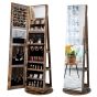 IVZEEL 360-Degree Mirrored Jewelry Armoire with 3-Color Auto-on LED Lights-Rustic Brown