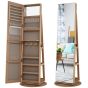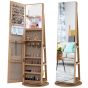 IVZEEL 360-Degree Mirrored Jewelry Armoire with 3-Color Auto-on LED Lights-Wood