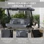 2-in-1 design: this three-seater garden swing transforms from a seat to a bed, offering dual functionality in a single, versatile piece. Adjustable and removable canopy: top of swing chair protects you from harmful uv rays in the sun and mild rain. Easy to remove, whenever you want. Padded seat and two pillows: sit and keep, comfortably on this garden swing - great for extended use. Metal frame, with cup holders: powder coated for extra strength - strong core for this garden swing bench. Cup holders are handy, keep a drink close to you. Dimensions: 164 H x 200 L x 120 W cm. Bed: 160 L x 98 W cm. Seat: 46 H x 160 L x 50 W cm. Tray: 25 L x 15 W cm. Maximum load 340 kg. Assembly required