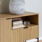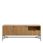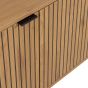 Introduce a touch of rustic sophistication to your home with our sideboard, which combines the warm appeal of matt wild oak effect with the modernity of a matt black steel base. The lamella front adds a unique texture, while the metal runners and open compartment ensure functionality and style.