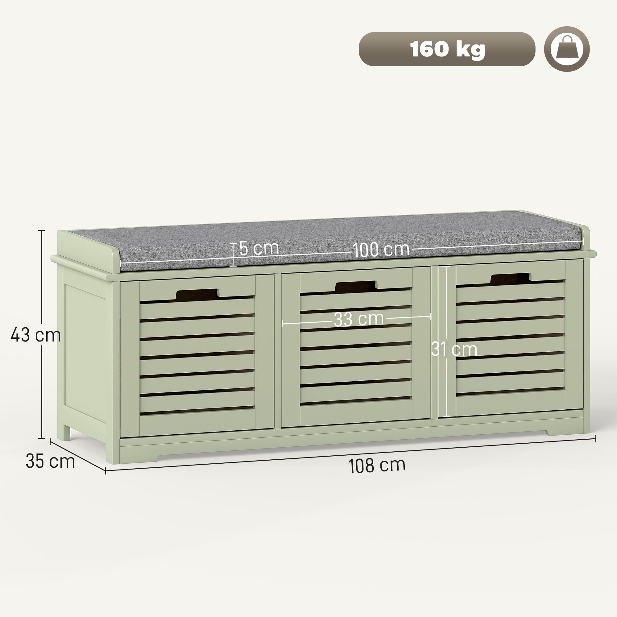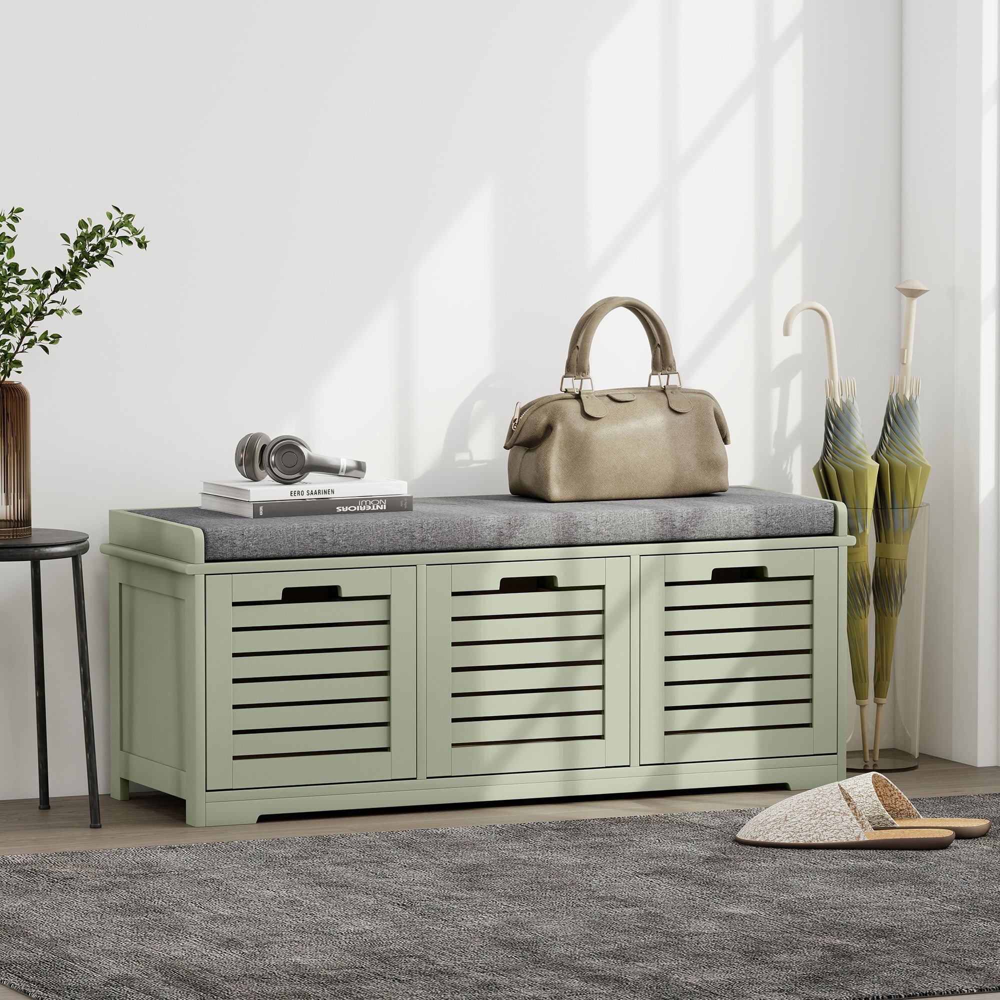 JALVIK 3 Drawer Shoe Storage Bench with Padded Cushion - Green
