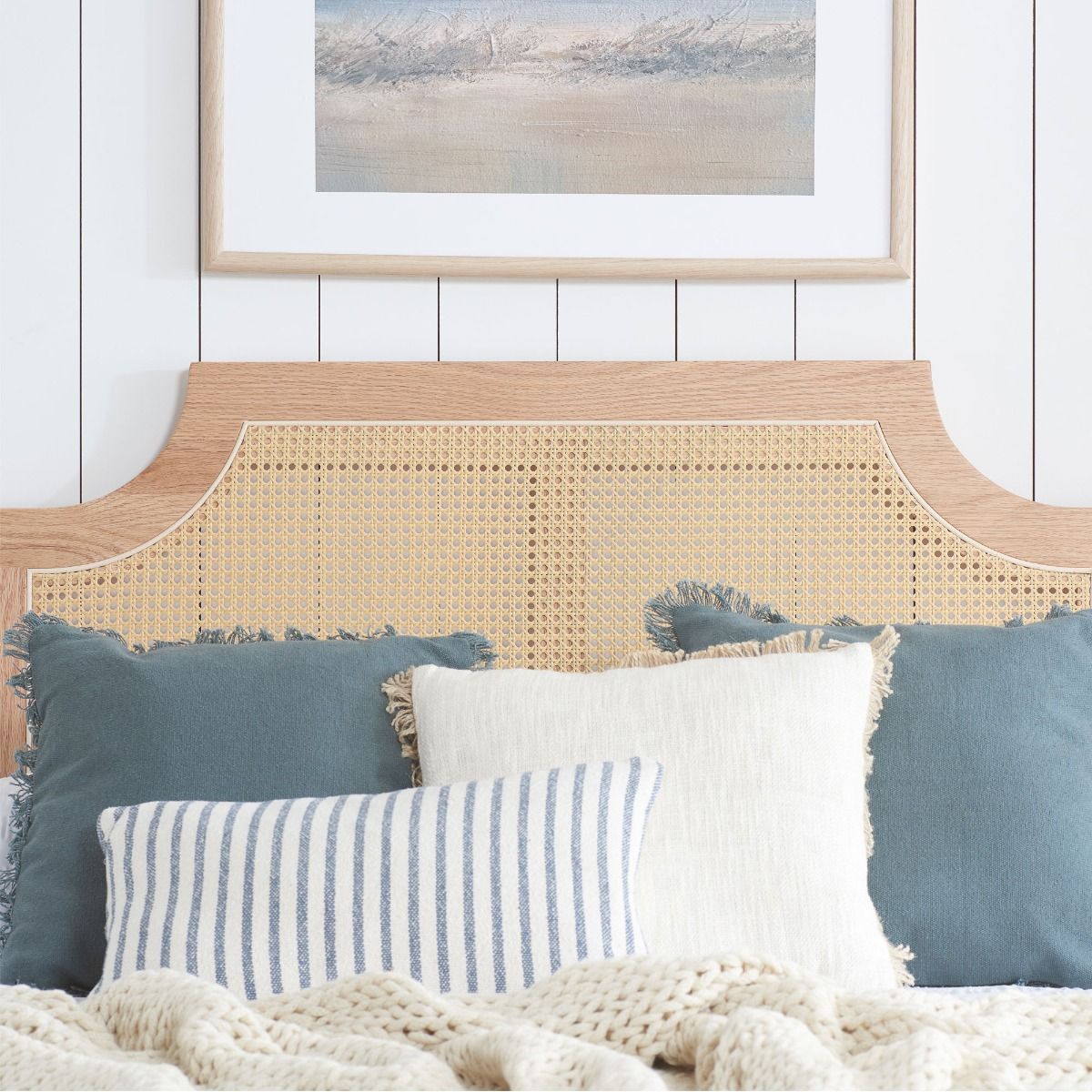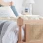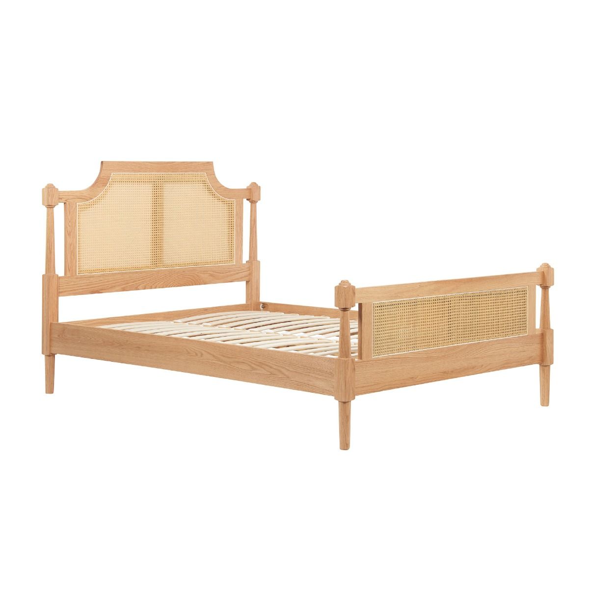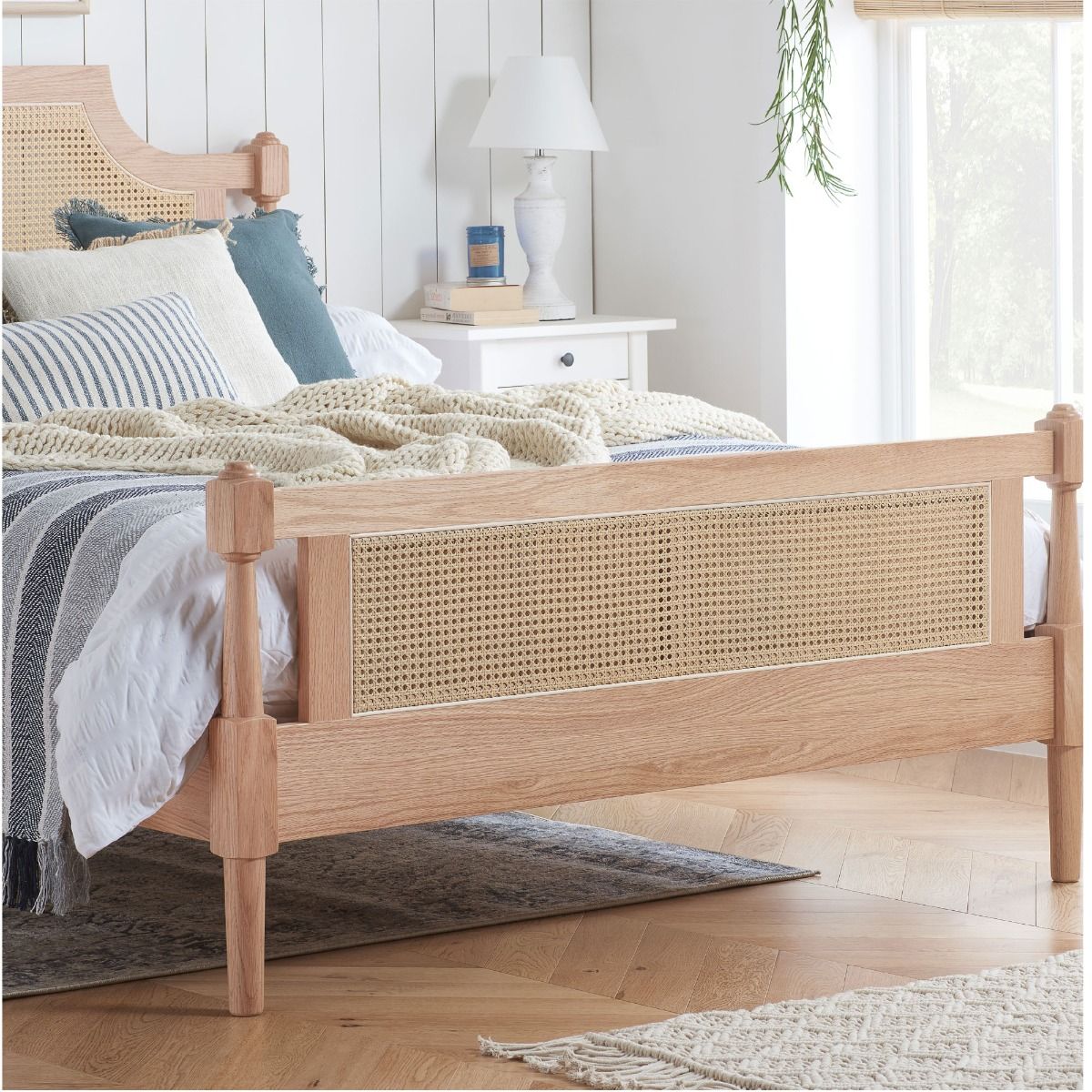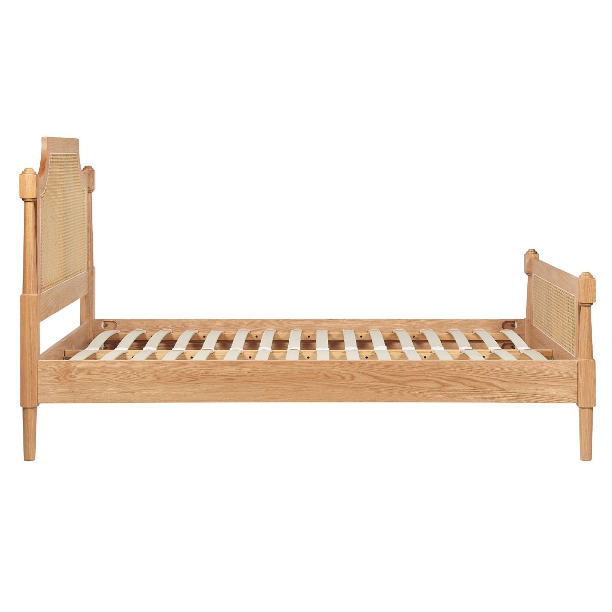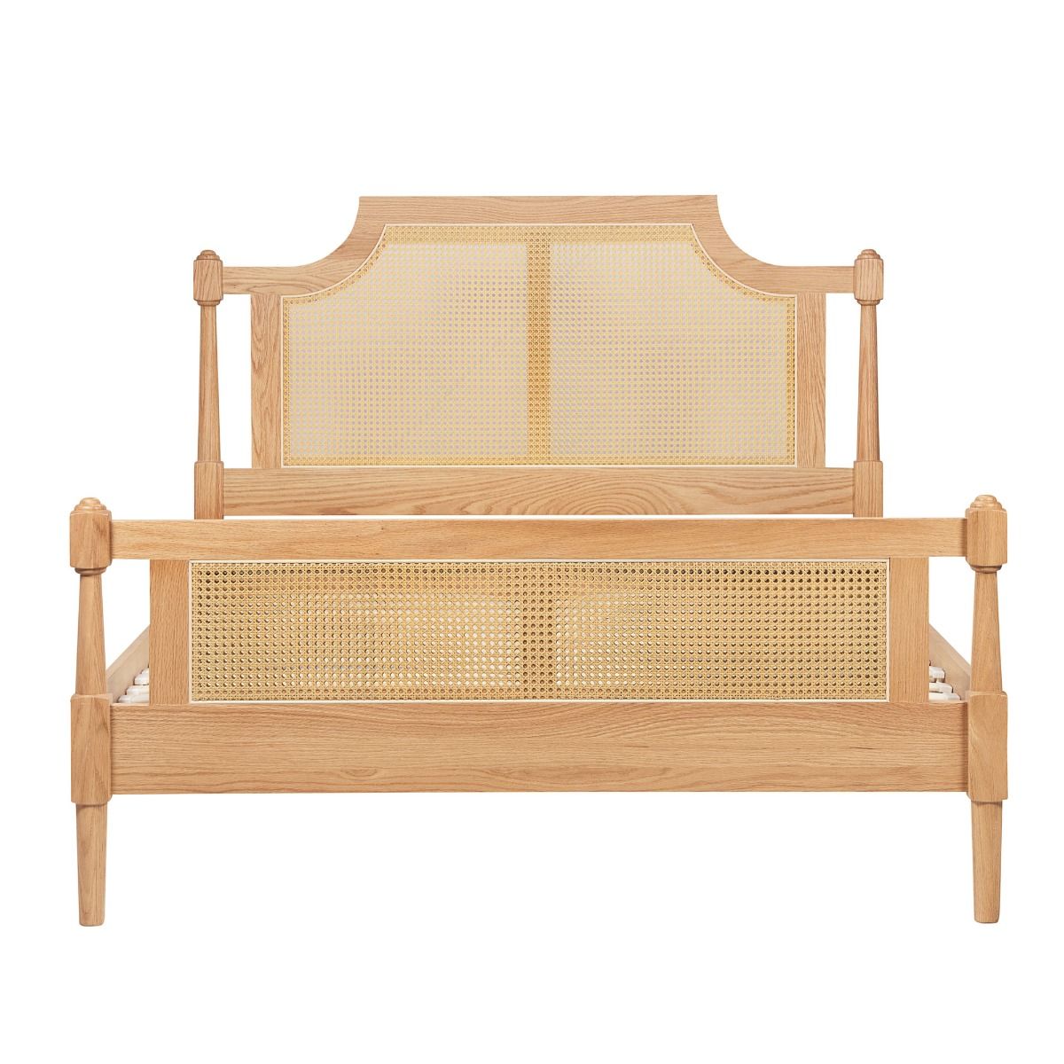 Where timeless elegance meets the unmatched warmth of natural materials. The Jannik bed is expertly crafted from the finest material. This bed frame reveals the enchanting patterns of oak grain, imparting a sense of earthy richness to your bedroom sanctuary. Both the headboard and footboard are adorned with exquisitely woven rattan, blending traditional artistry with a touch of contemporary flair.