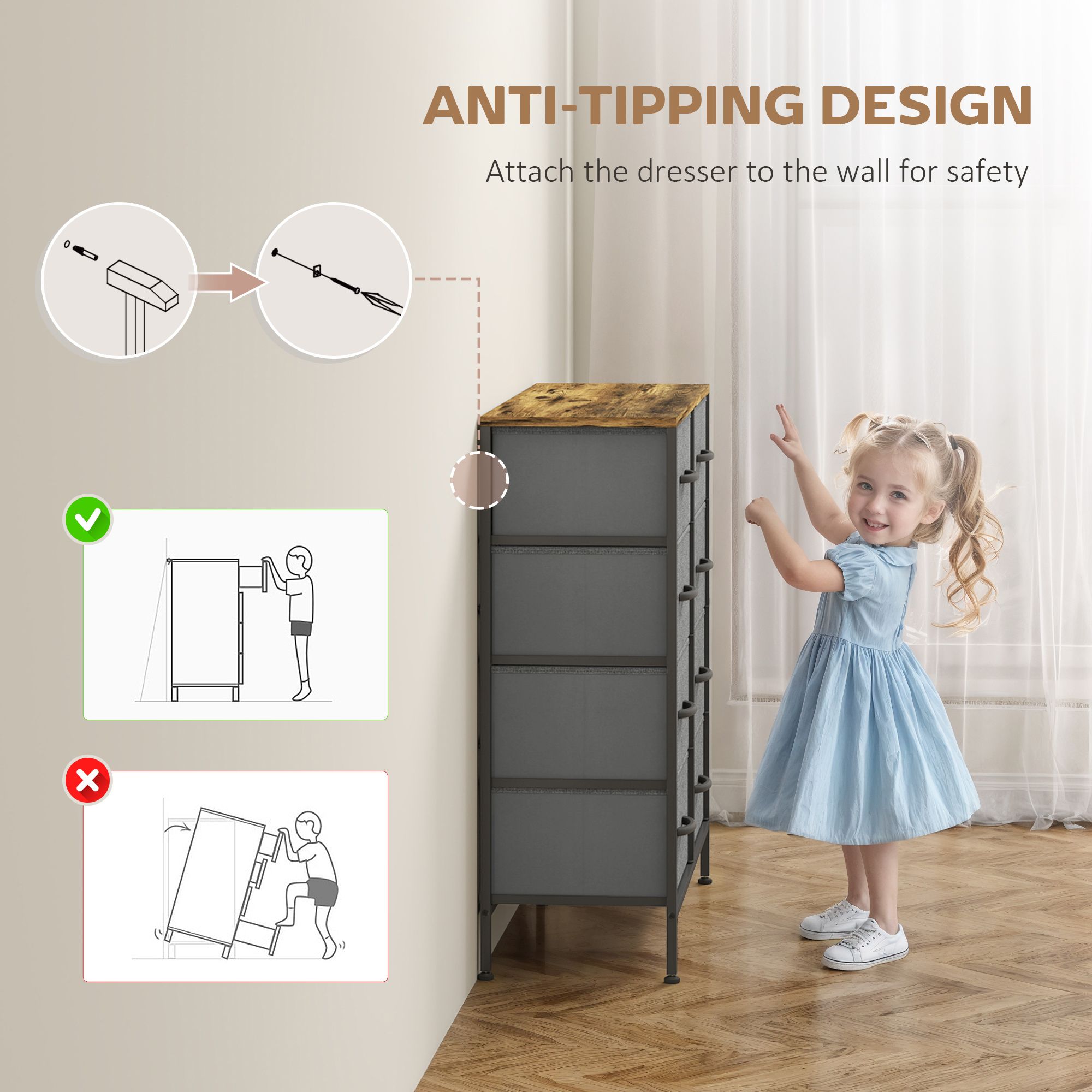 JAPRIS Grey Chest of Drawers - Medium-sized, 8 Drawers, Double, Fabric Drawers - Black Frame Dark Oak Top