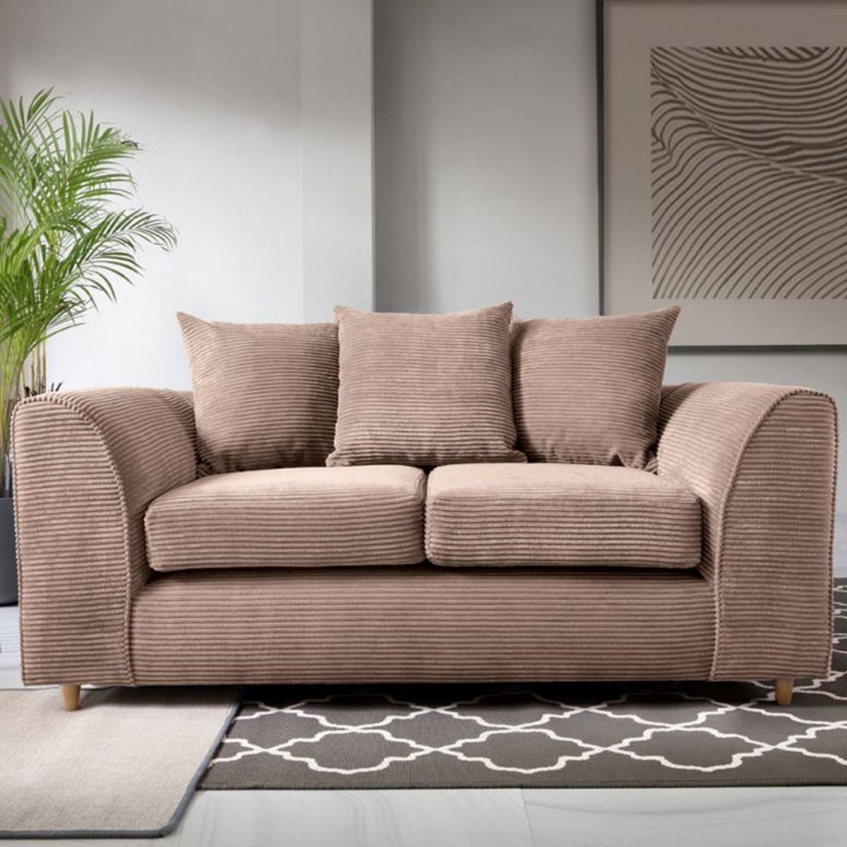 Looking for a stunning Jasmine jumbo cord sofa? Our 2 seater jumbo cord sofa awaits you with its deep filled seat and back cushions, generous angular arms and a plinth base made out of solid wood. Choice of Jasmine jumbo cord fabric is a structured soft chenille fabric carefully stitched to seamlessly blend into the cushions and frame.