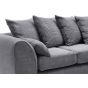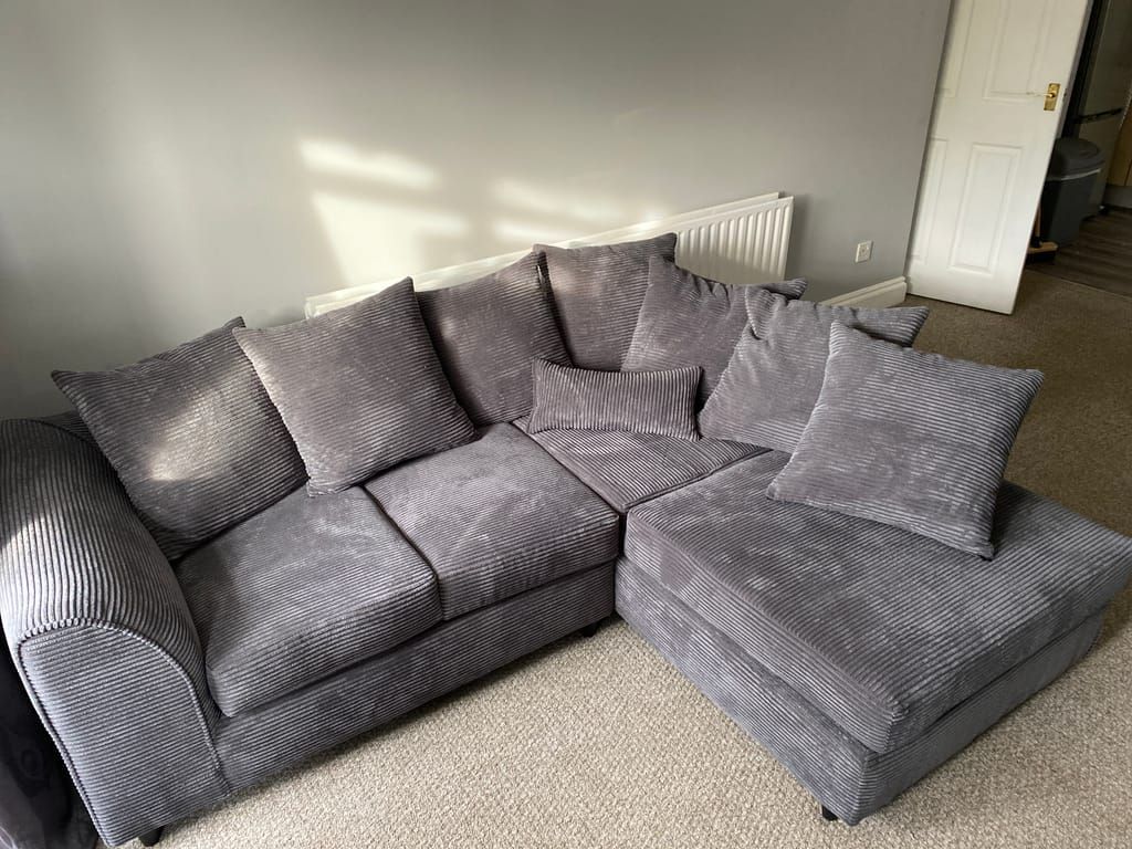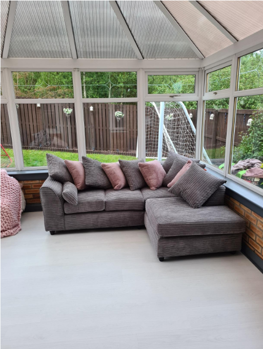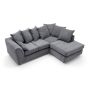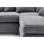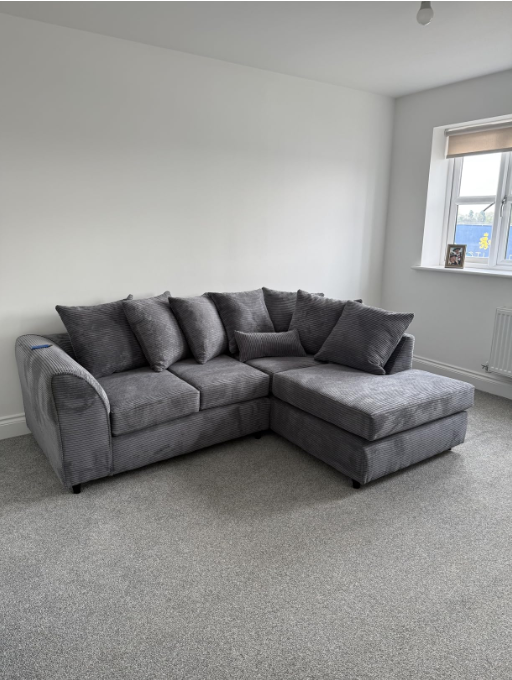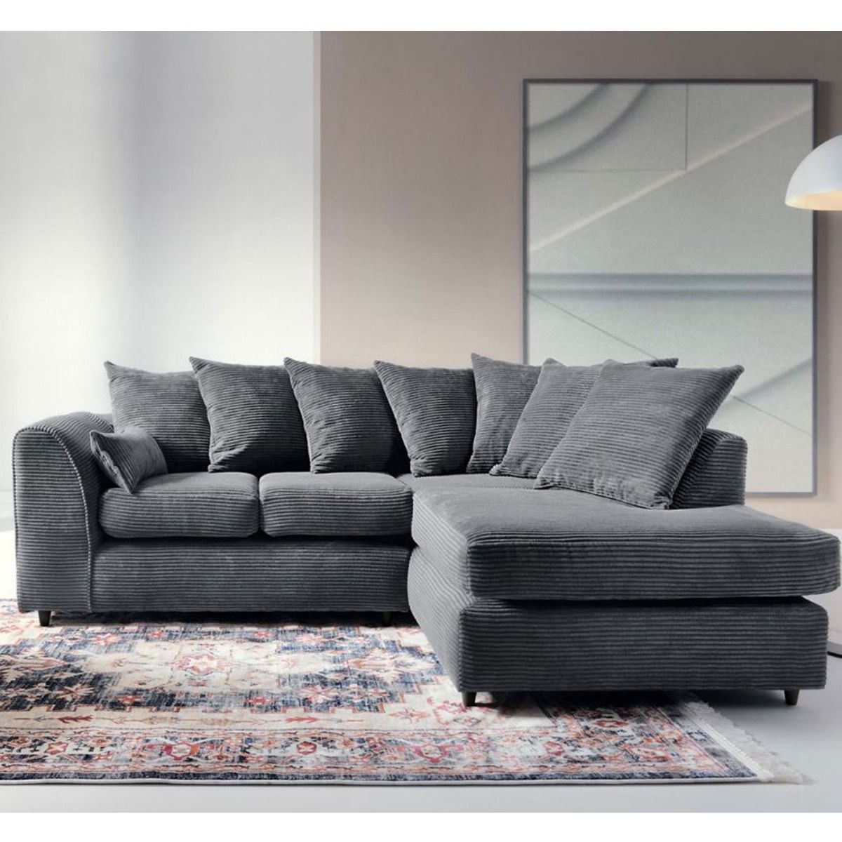 A grey Jasmine jumbo cord corner sofa? Perhaps in brown? We have it both! Enjoy a lavish chaise corner sofa upholstered in the most pristine soft structured cord chenille fabric there is. Soft to the touch. Opulent and inviting in its visual appeal. Angular arms, a pared back and generously filled scatter cushions provide a very contemporary style statement. A sofa destined to become your old faithful. Choose from an earthy black and grey colour pairing or a warmer brown and beige pairing.