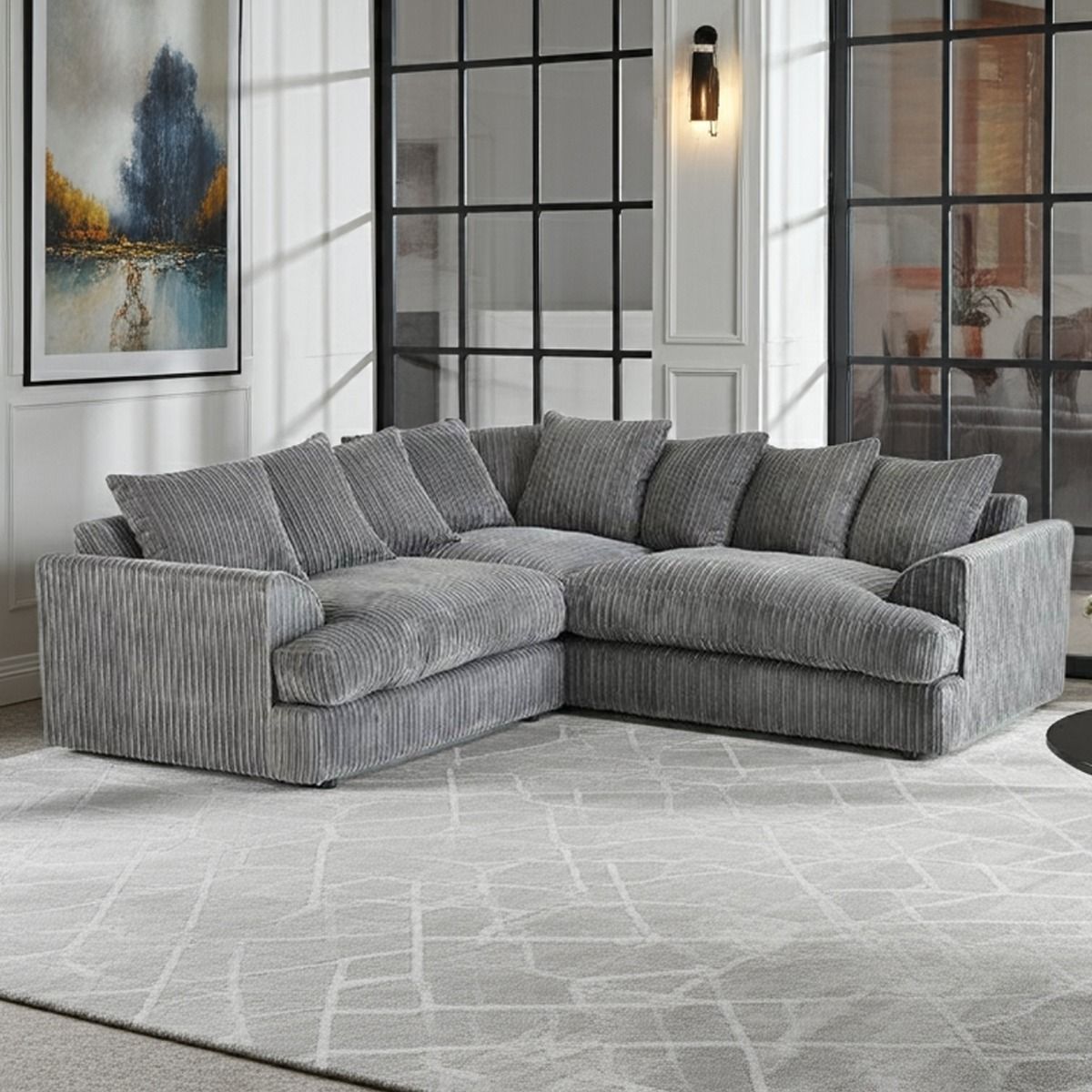 Jasper Jumbo Cord Corner Sofa - Grey