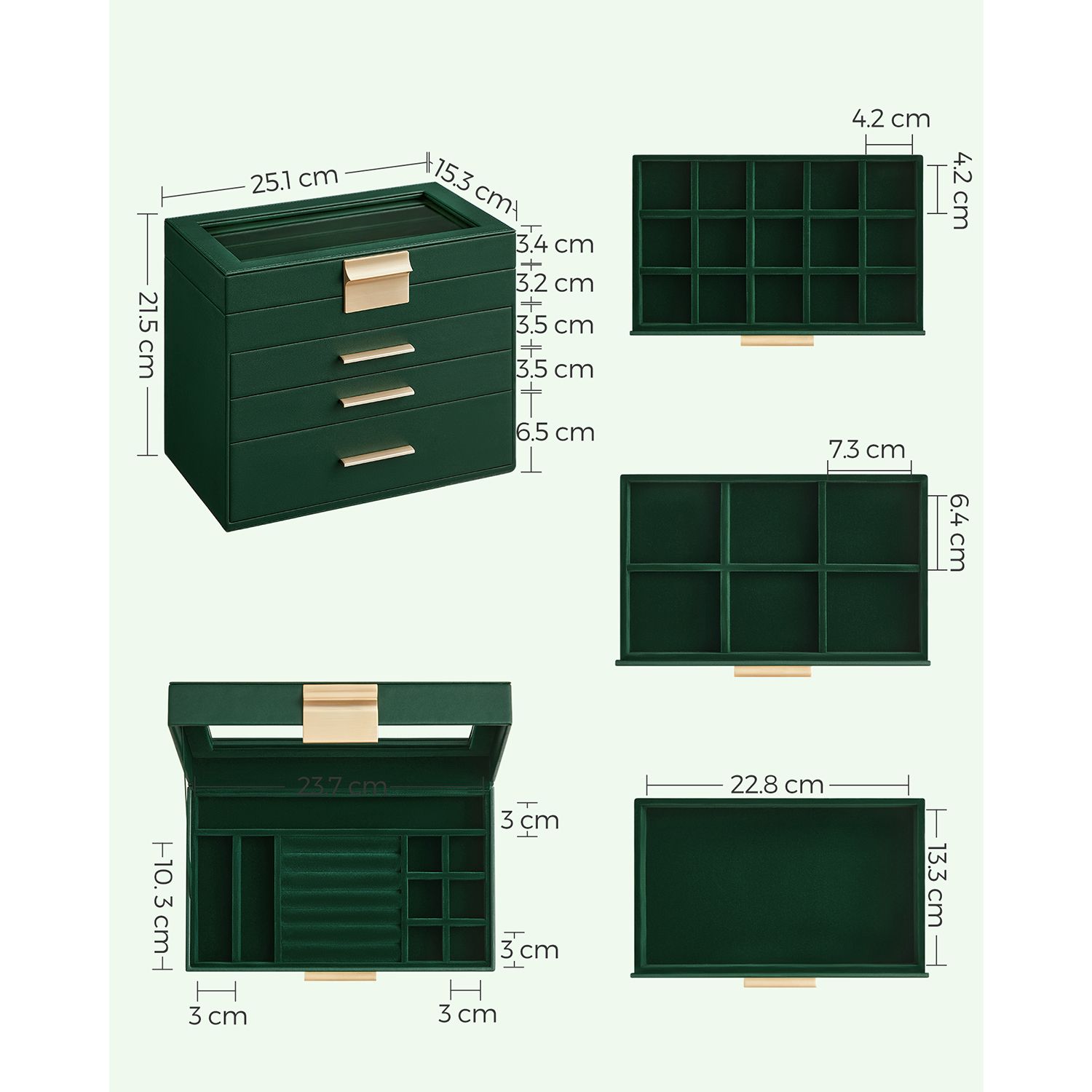 Jewellery Box with Glass Lid Forest Green and Gold Colour