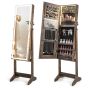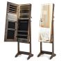 Jewellery Cabinet - Standing Jewelry Cabinet with LED Lights Lipstick Box and 2 Drawers-Rustic Brown