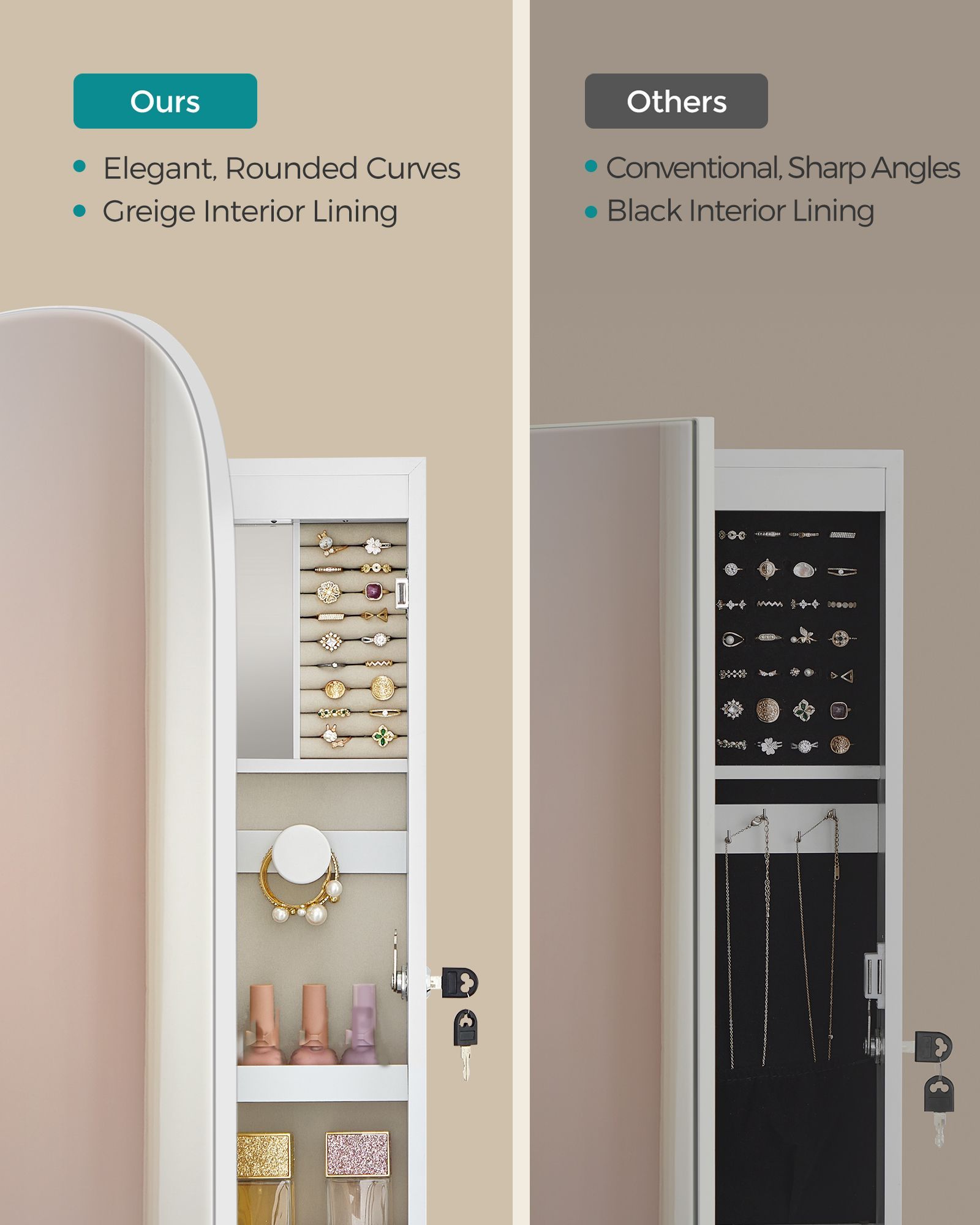 Jewellery Cabinet - VERRAE LED Mirror Jewellery Cabinet Wall Mounted - White