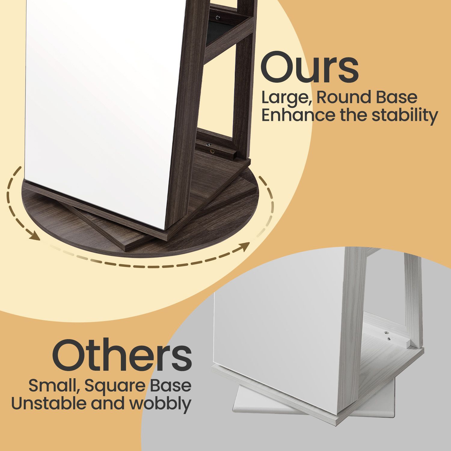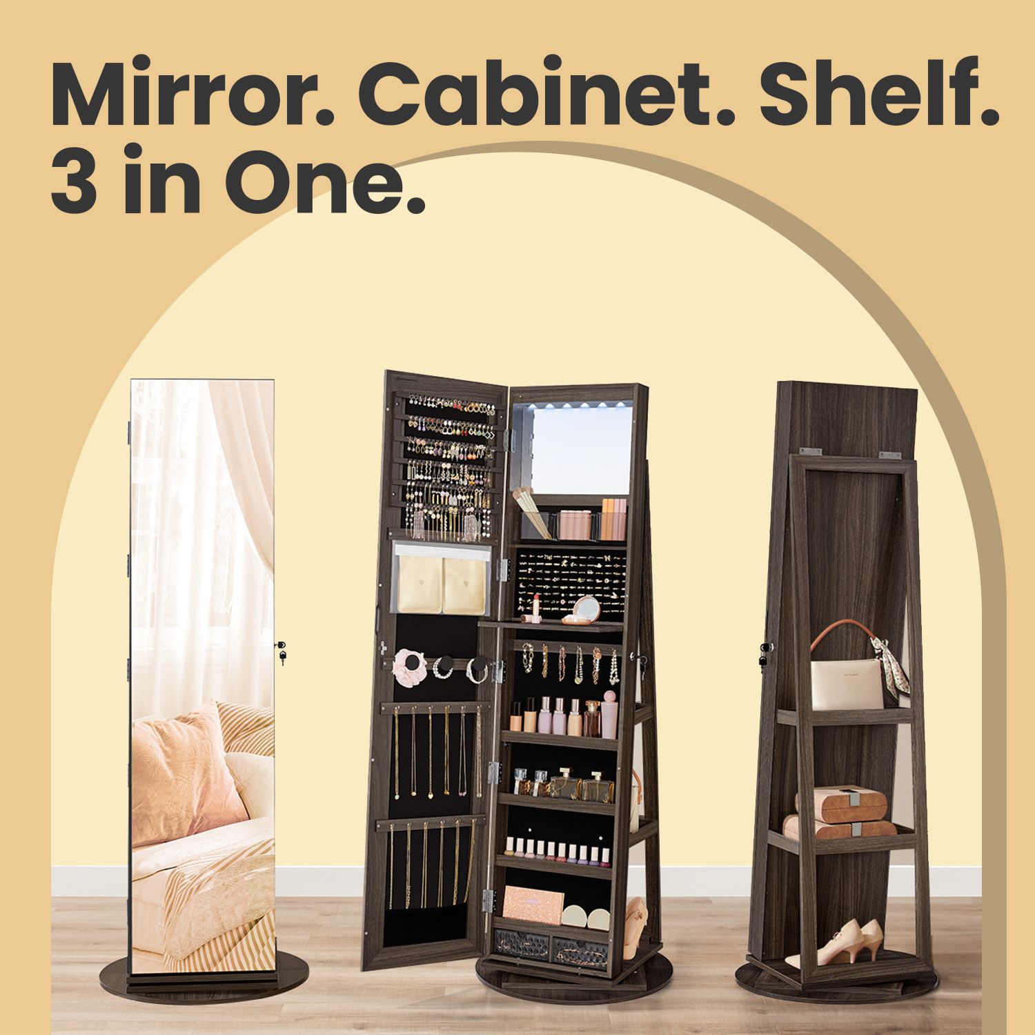 Jewellery Cabinet - VERRIA Swivel Lockable Mirror Organizer Frameless Full Length - Ash Brown
