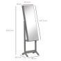 Keep jewellery, perfumes, make-up and accessories organised and easily accessible with this armoire. On the outside, a full-length mirror is fitted, sets to four different angles. Inside, there are 100 earring slots, a bracelet hanger, 24 necklace hooks, 105 ring slots and four shelves - plenty of storage room, you can keep everything together at once. Complete with a two-feet base for balance.