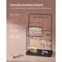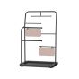 Organise your treasures with this stylish Ink Black Jewellery Stand. Featuring a sturdy metal frame, it boasts two earring boards and six hanging rods, perfect for displaying necklaces, bracelets, and earrings. Keep your rings neatly arranged with the integrated holder. This elegant organiser is the ideal solution for keeping your favourite accessories accessible and beautifully displayed.