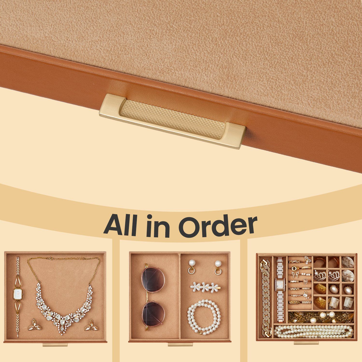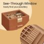 Jewelry Box - VERRIA 3-Layer Organizer with Glass Lid and 2 Drawer - Caramel Brown