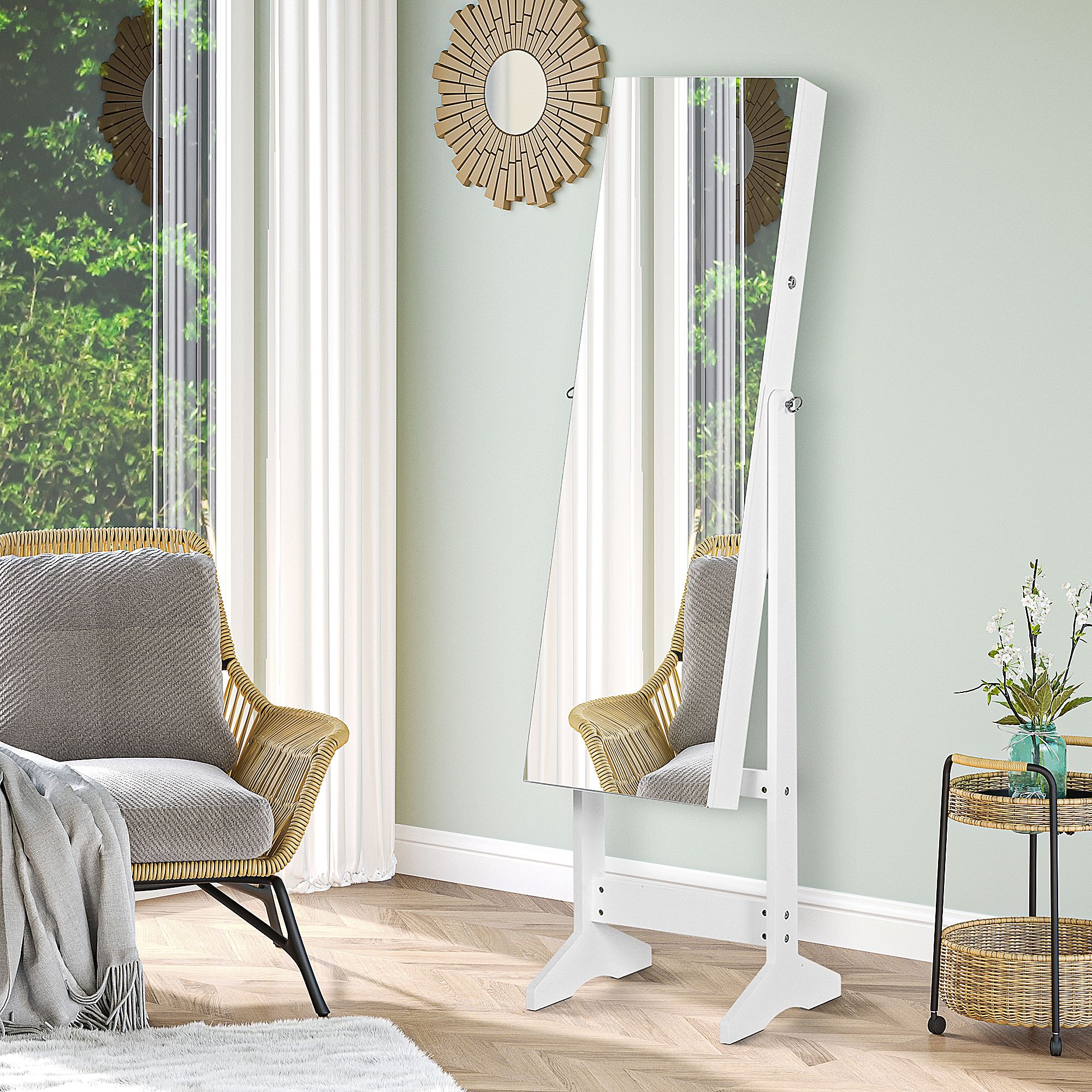 Jewelry Cabinet Standing Mirror Full Length Makeup Lockable Armoire Storage Organizer White