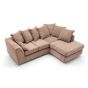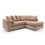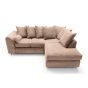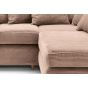 Enjoy a lavish chaise corner sofa upholstered in the most pristine soft structured cord chenille fabric there is. Soft to the touch. Opulent and inviting in its visual appeal. Angular arms, a pared back and generously filled scatter cushions provide a very contemporary style statement. A sofa destined to become your old faithful. Choose from an earthy black and grey colour pairing or a warmer brown and beige pairing.