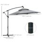 Jones 3m Cantilever Banana Parasol with LED Lights - Light Grey