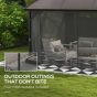 Jones's garden gazebo is a personal getaway, right in your garden. The 12m2 means plenty of room for you and friends. The aluminium frame is reinforced with a steel support structure: a strong core. It's fitted with curtains to create an open or private atmosphere whenever you need; net inner curtains help keep insects out. Set complete with included stakes and expansion screws to pin to the ground.