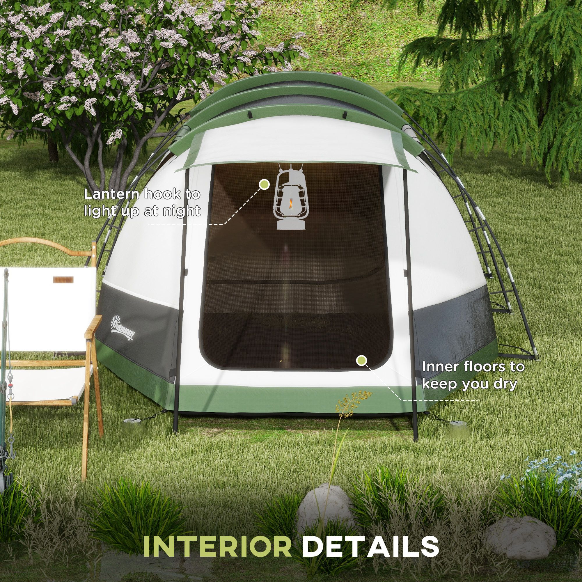 Jones Family Camping Tent for 3-4 Persons - Green