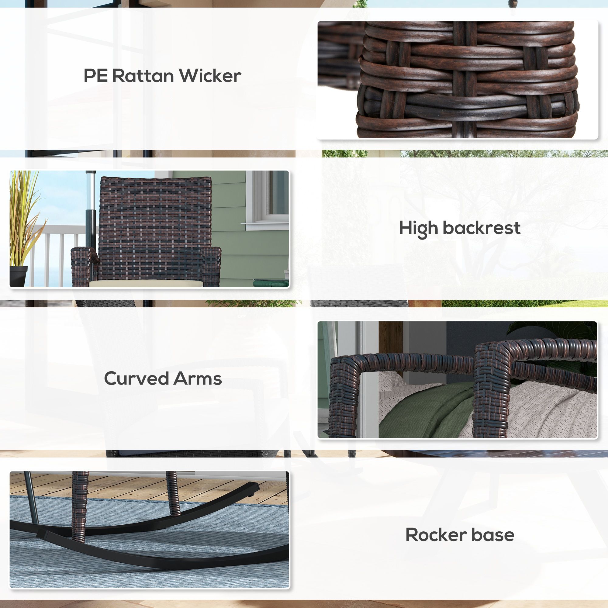 Jones Outdoor PE Rattan Rocking Chair Set of 2 with Cushion - Brown