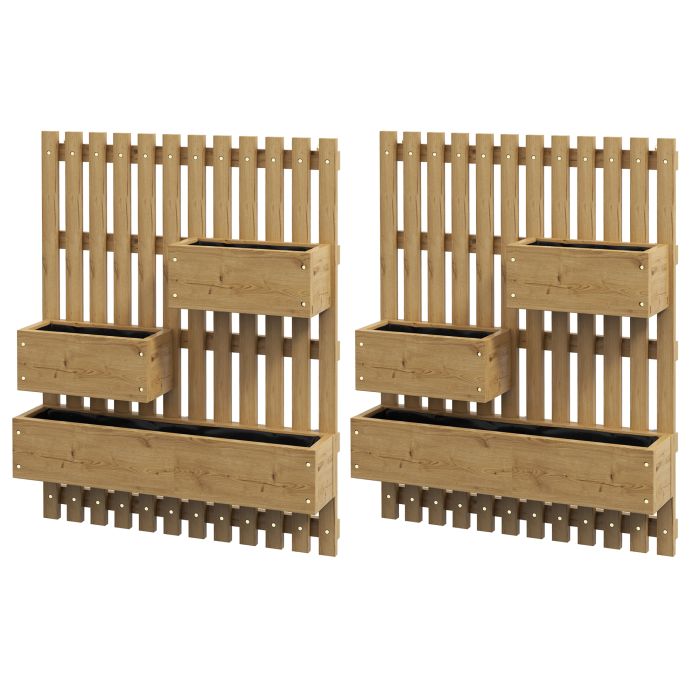 Jones Set of 2 Wall-Mounted Wooden Garden Planters - Carbonised Finish